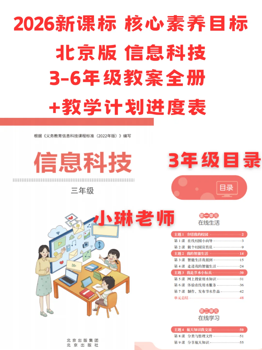 >北京版3-6年级信息科技全一册教案全册+教学计划进度表 新课标 核心素养目标教师活动 学生活动 设计意图板书设计 教学反思