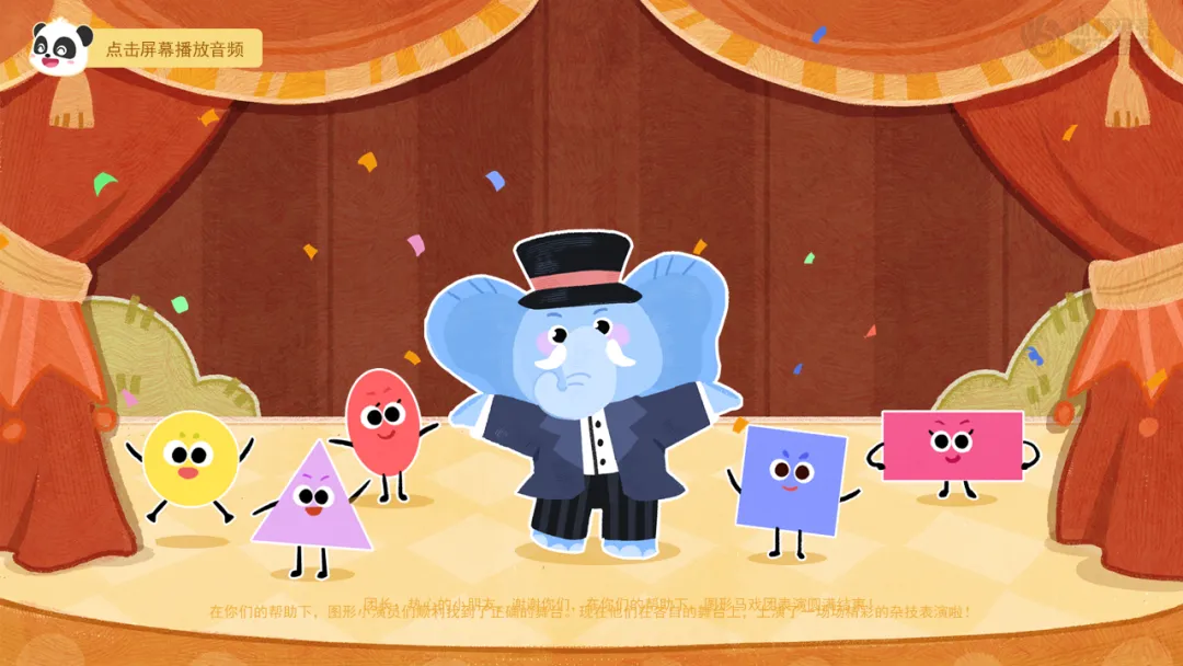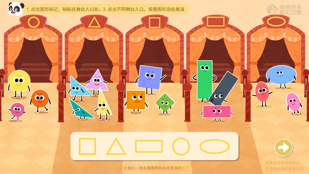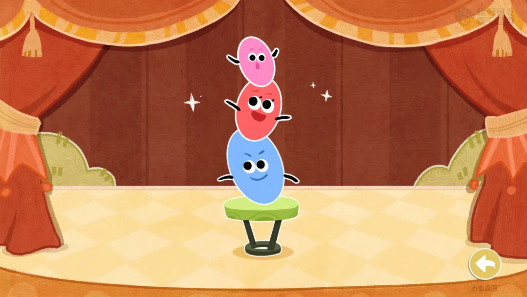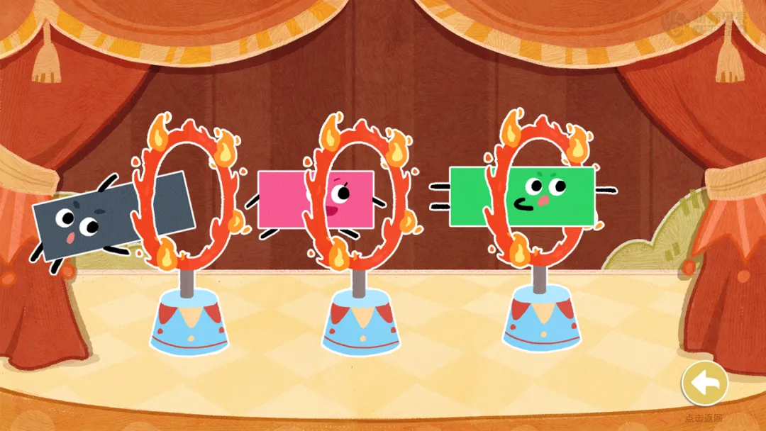 ——在你们的帮助下,图形小演员们顺利找到了正确的舞台。现在他们在各自的舞台上,上演了一场场精彩的杂技表演啦!