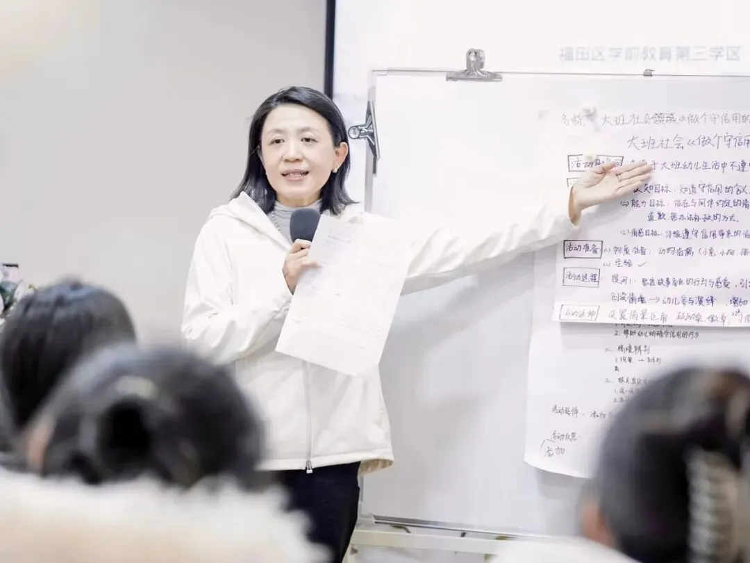 活动最后,第三学区学区长、深圳市莲花北幼儿园王欣园长对本次教研进行专业总结。她充分肯定了青年教师们在研讨中展现的学习热情与思考深度,并围绕社会领域教案与教师专业发展,提炼出三点核心指引: