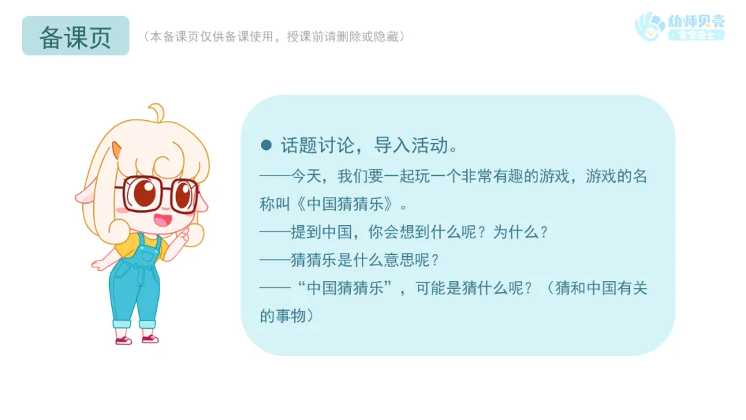 ——今天,我们要一起玩一个非常有趣的游戏,游戏的名称叫《中国猜猜乐》。