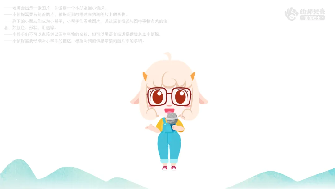 ——小侦探需要仔细听小帮手的描述,根据听到的信息来猜测图片中的事物。