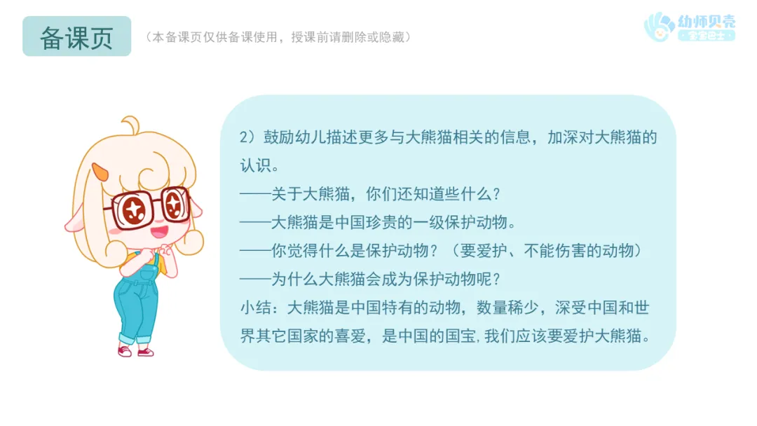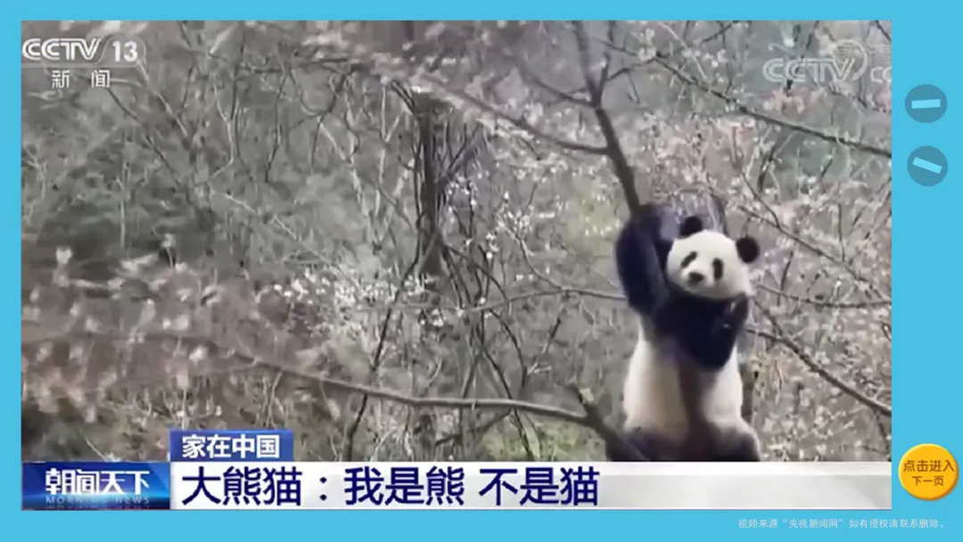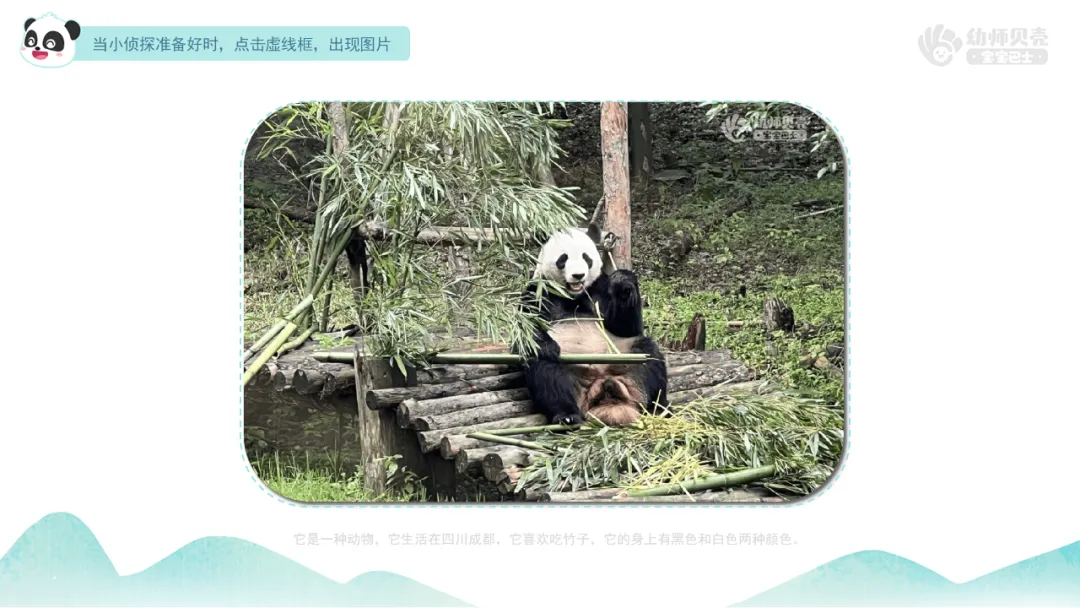 2)出示组图“祖国知名事物-大熊猫”,教师示范提供图片信息,带领幼儿尝试游戏。