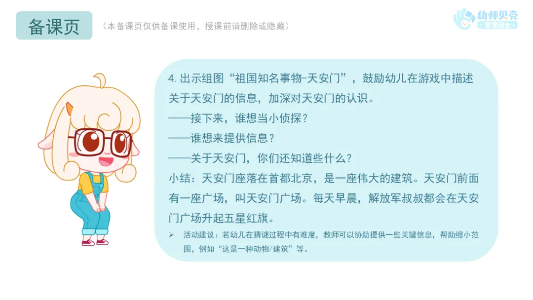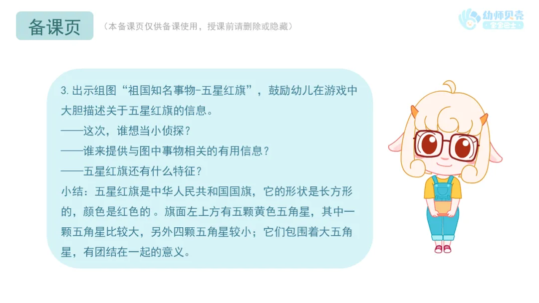 ——老师会出示一张图片,并邀请一个小朋友当小侦探。