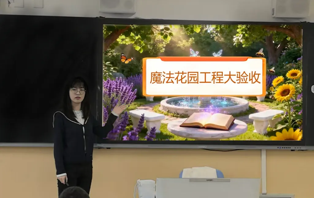 创设AI情境,以“魔法花园的兔子村需要一个灵活的围栏”为问题情境,激发学生学习兴趣,自然引出对平行四边形特征的探究需求。学生通过使用三角尺、直尺、量角器等学具进行小组合作,动手验证“对边相等”“对边平行”等几何猜想,增强学习的参与感与体验性。