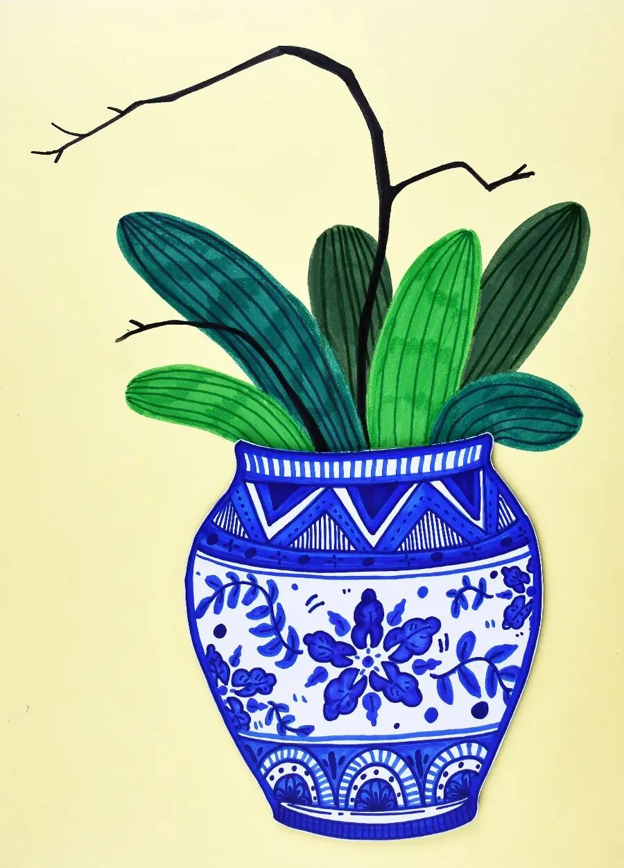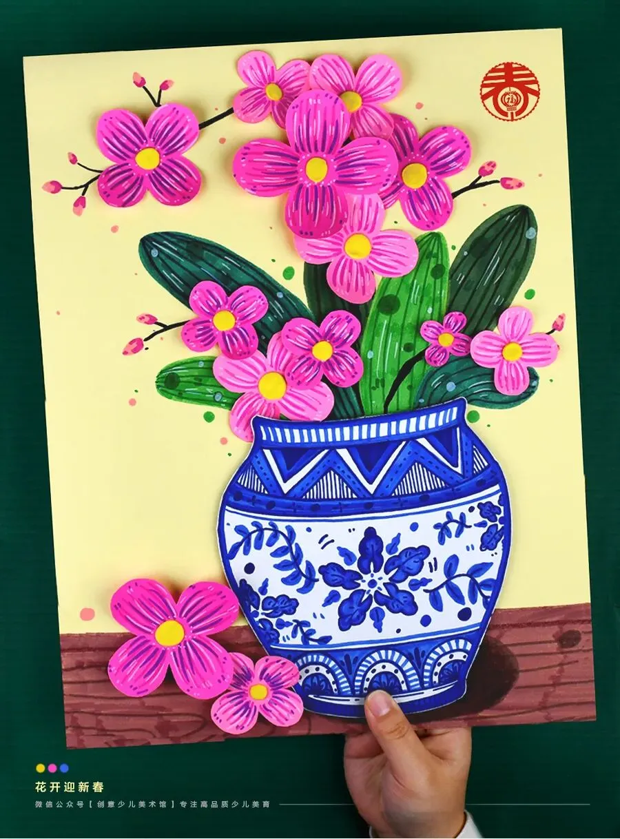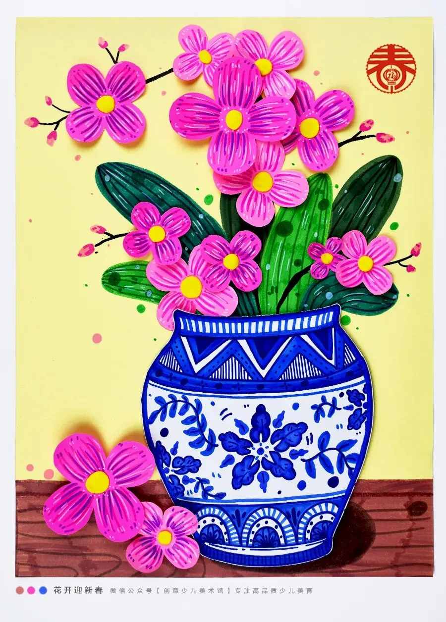当热烈现代的蝴蝶兰,遇见了拥有千年历史的青花瓷,会碰撞出怎样的火花呢?在今天的美术课程中,让我们拿起画笔,用红与蓝的色彩协奏,画出一盆意境优美、充满东方韵味的年宵花吧!