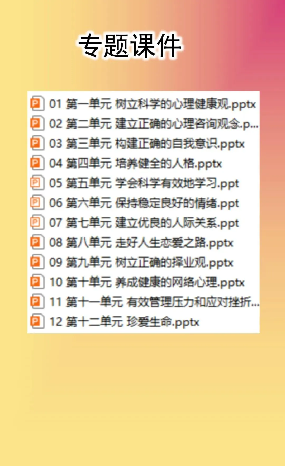 这 12 个单元的课件堪称 “心理健康教育全书”,从《树立科学的心理健康观》到《珍爱生命》,逻辑清晰,层层递进。
