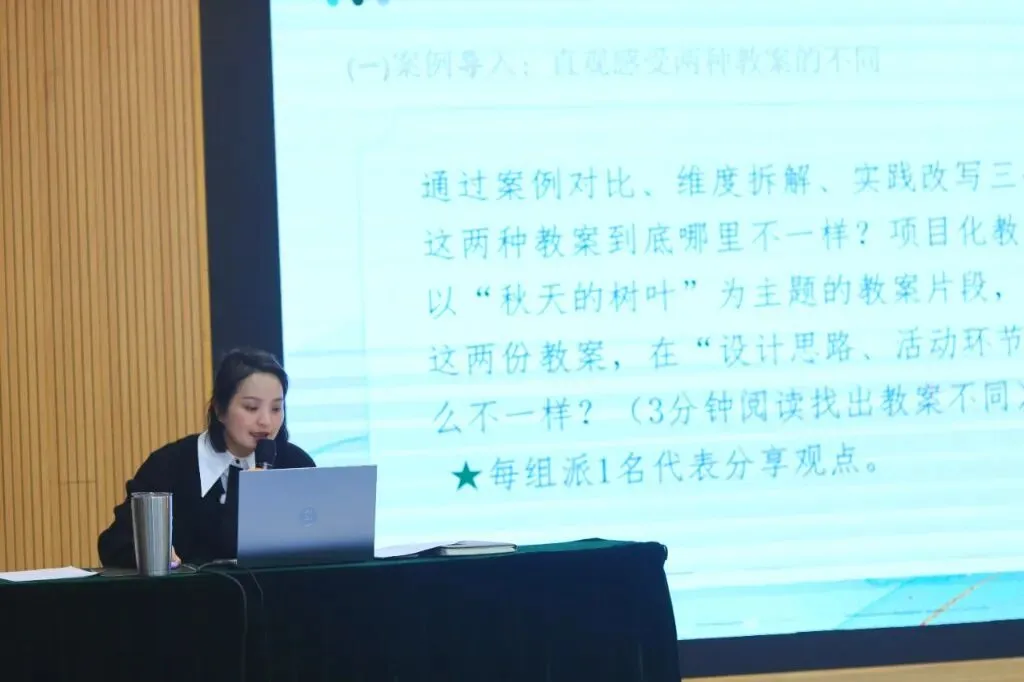 活动伊始,刘海清园长以“秋天的落叶”为主题开场,引出项目化课程教案与传统教案的核心差异。在场老师们全神贯注聆听,沉浸其中.......