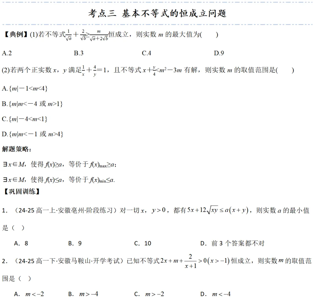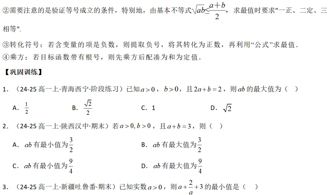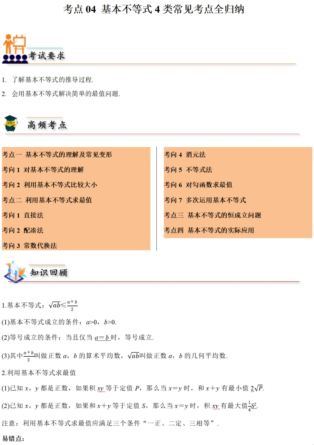 >2026年高考数学一轮考点归纳与解题讲义练习|基本不等式4类常见考点全归纳