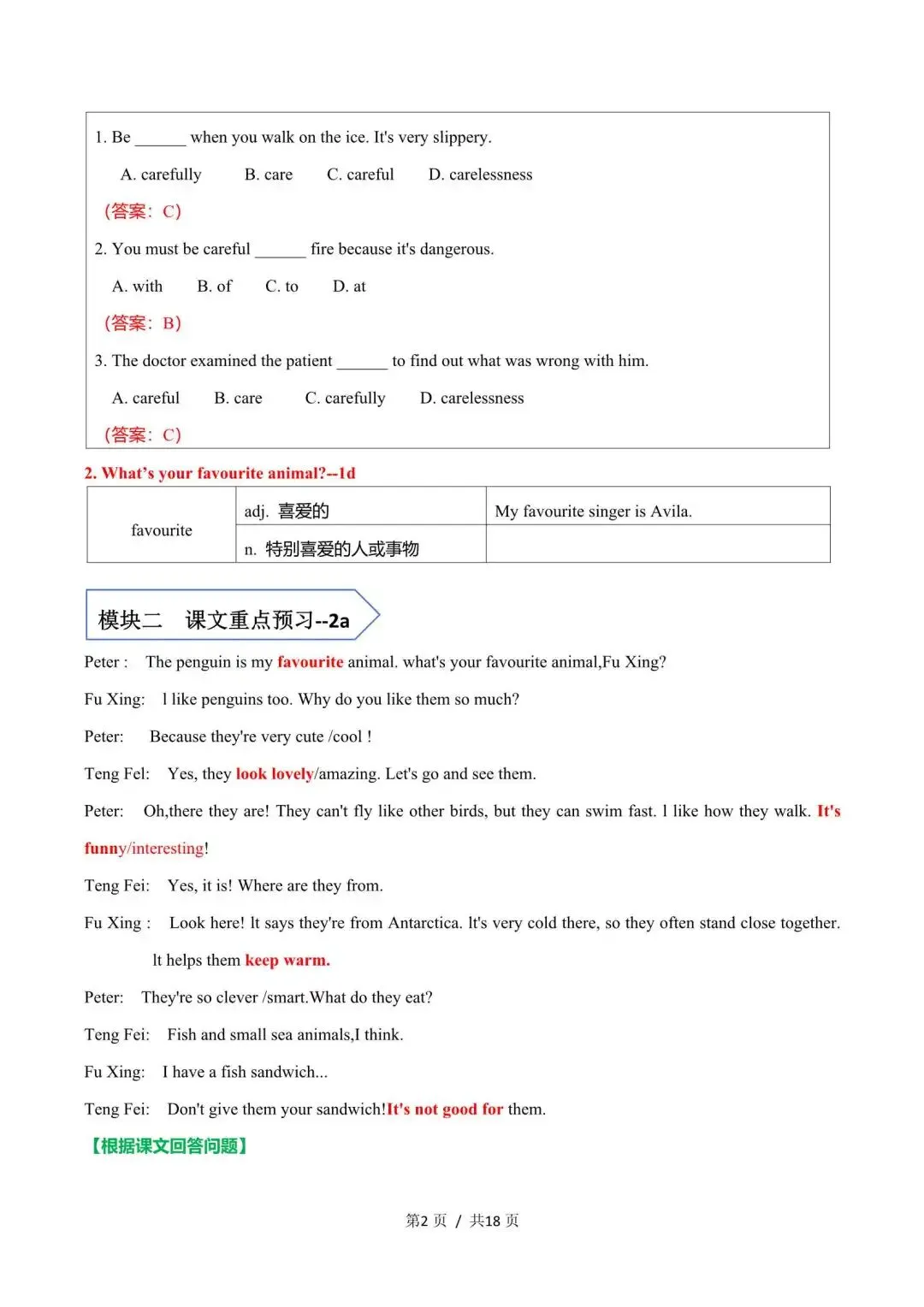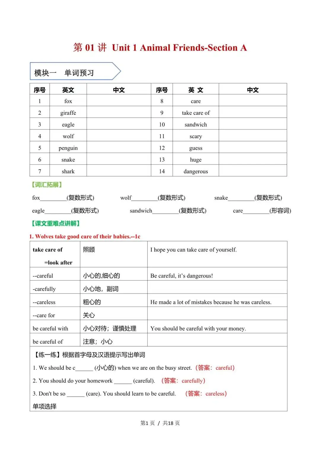 1. 本讲义包含两个年级(七、八年级),每个年级分16讲,包括课前小测,教材重点讲解,核心语法讲解,教材文章讲解,话题写作练习,单元综合练几个环节,能达到新旧知识衔接以及学习新课和巩固拓展的效果。