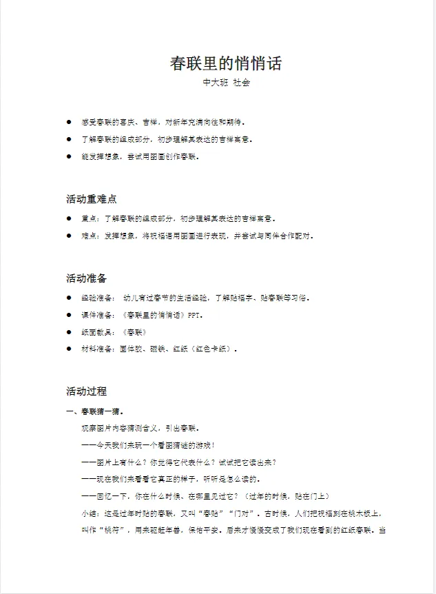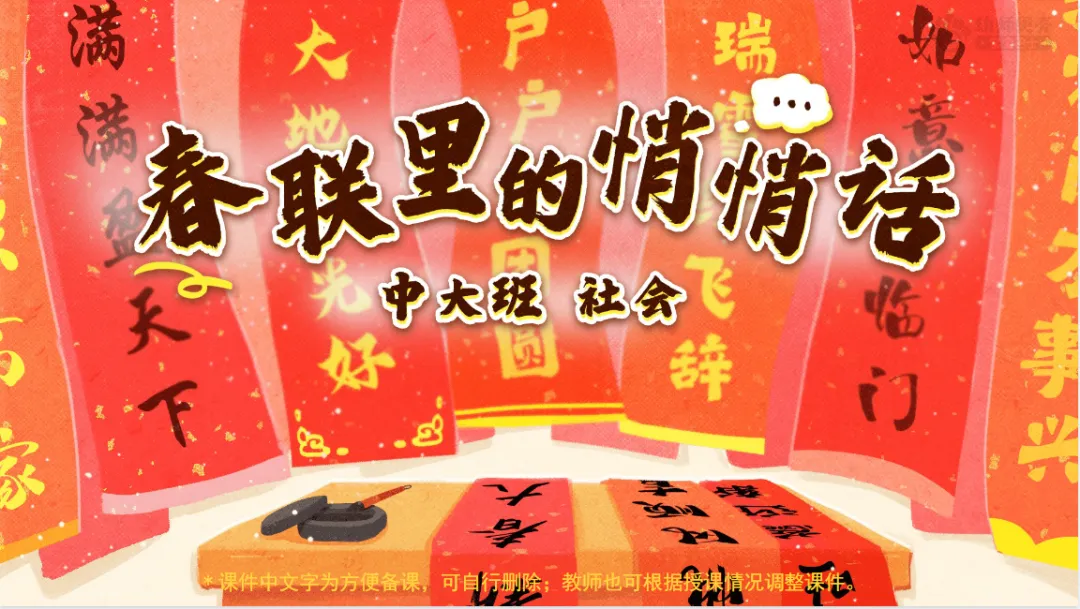 >幼儿园中大班_社会_课件《春联里的悄悄话》PPT+教案+活动反思+纸面教具共享