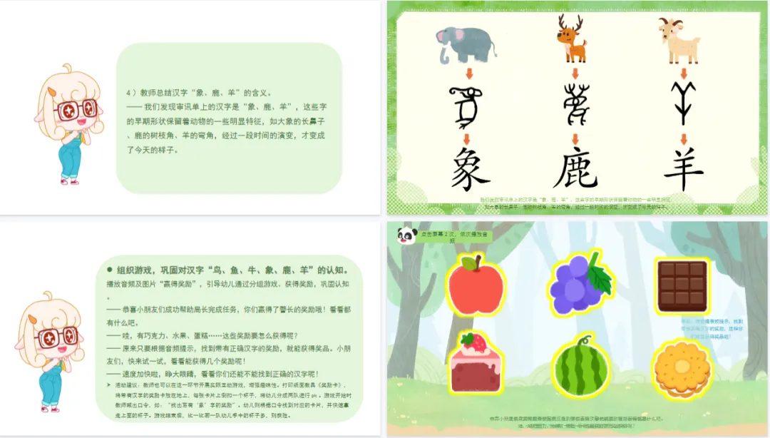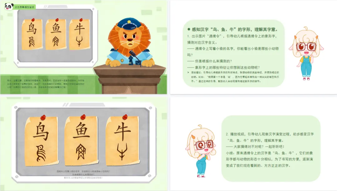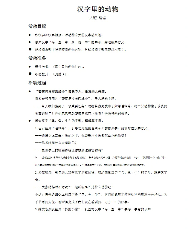 >幼儿园大班_语言_课件《汉字里的动物》PPT+教案+识字视频+纸面教具共享