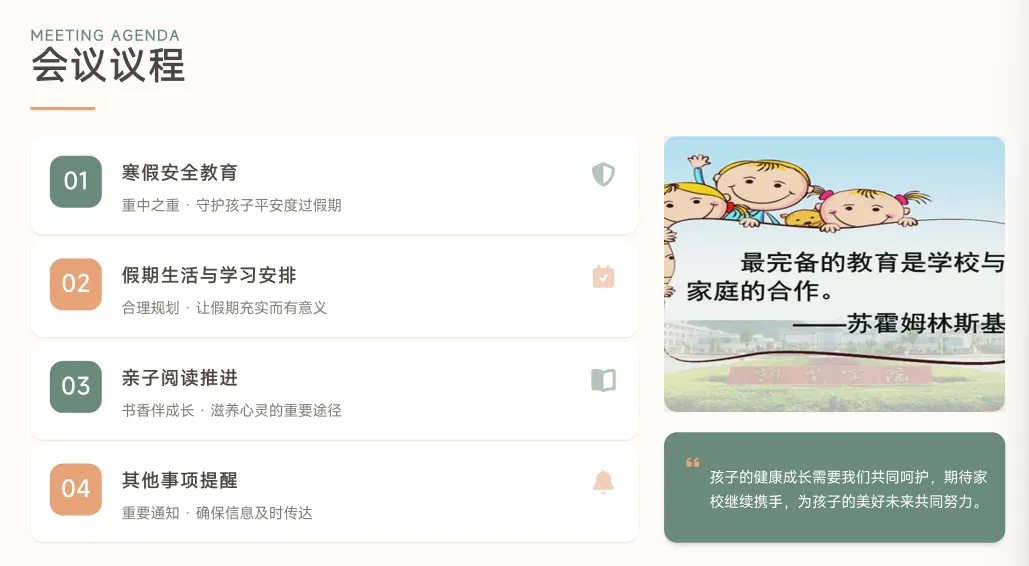 最后,再次感谢各位家长一直以来的支持与配合。孩子的健康成长需要我们共同呵护,期待家校继续携手,为孩子的美好未来共同努力。