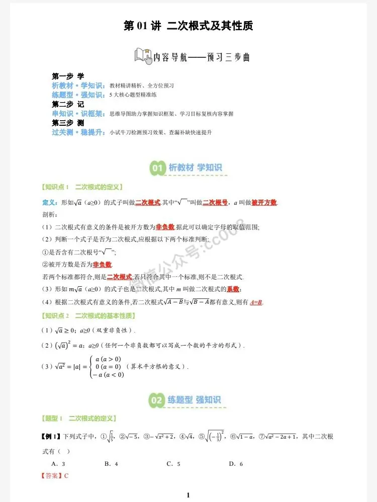 【今日分享】2026春新八下数学•二次根式及其性质(2个知识点+5个题型+思维导图+过关测)寒假预习讲义【原卷版+解析版】