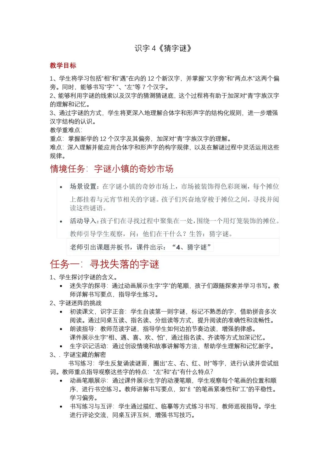 一下第一单元《猜字谜》 | 教学课件+教案+逐字稿