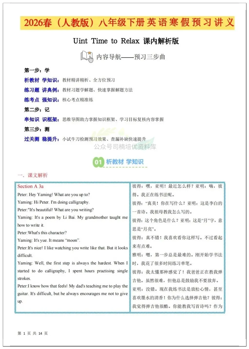 2026春八年级下册(英语)寒假预习讲义课内重点知识讲解(共8讲),有电子版可下载打印!