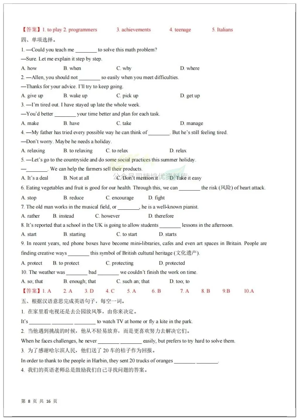 2026春八年级下册(英语)寒假预习讲义课内重点知识讲解(共8讲),有电子版可打印!