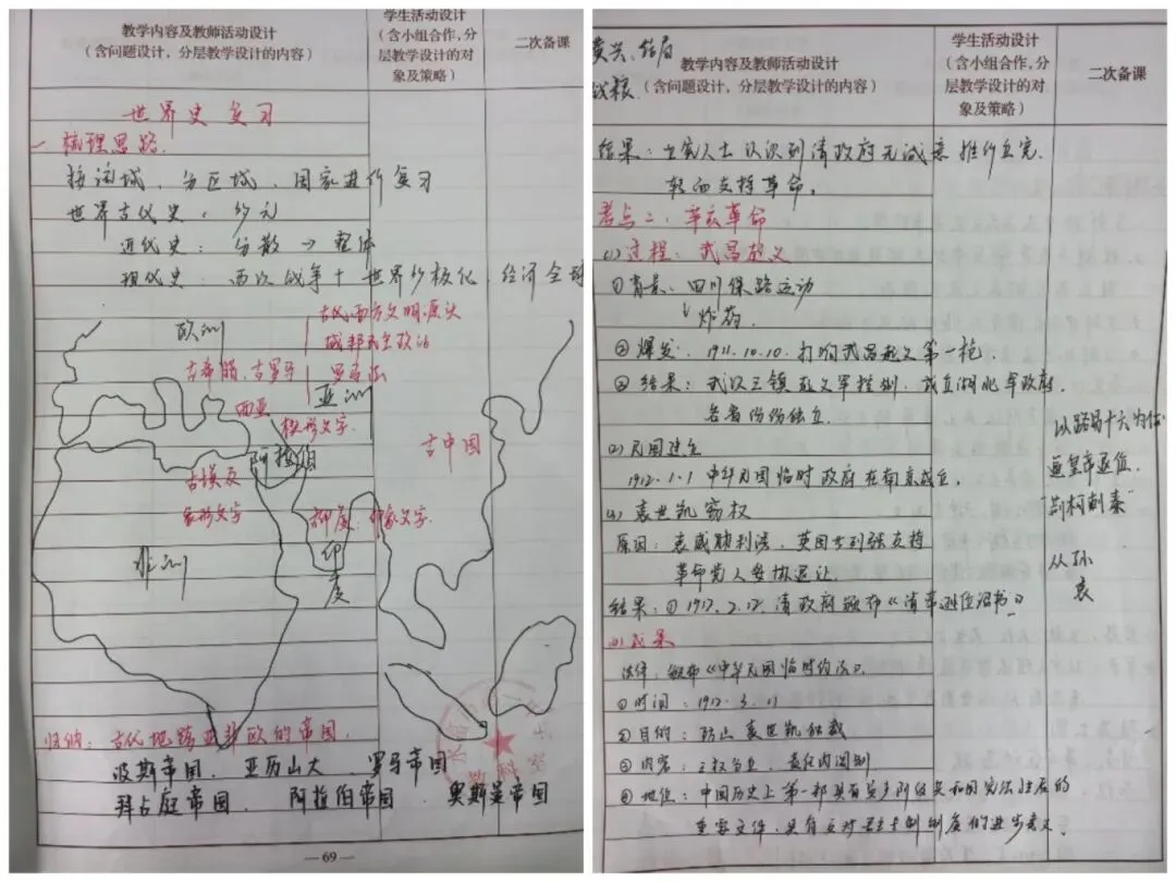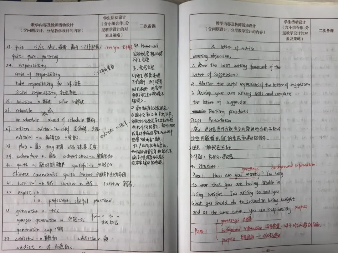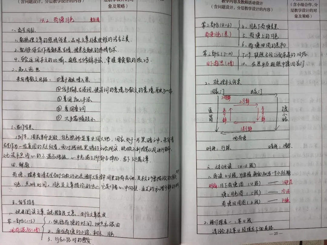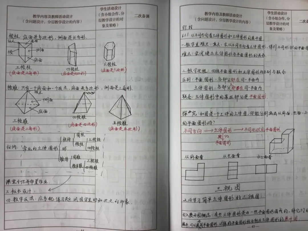 数学教案逻辑清晰、精准规范,手写公式推导与图形绘制工整细致,明确标注重难点与解题思路,部分补充变式训练,兼顾不同层次需求,让抽象知识具象化,尽显理科逻辑之美。