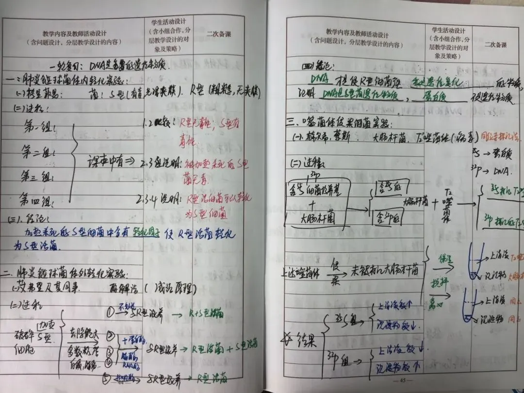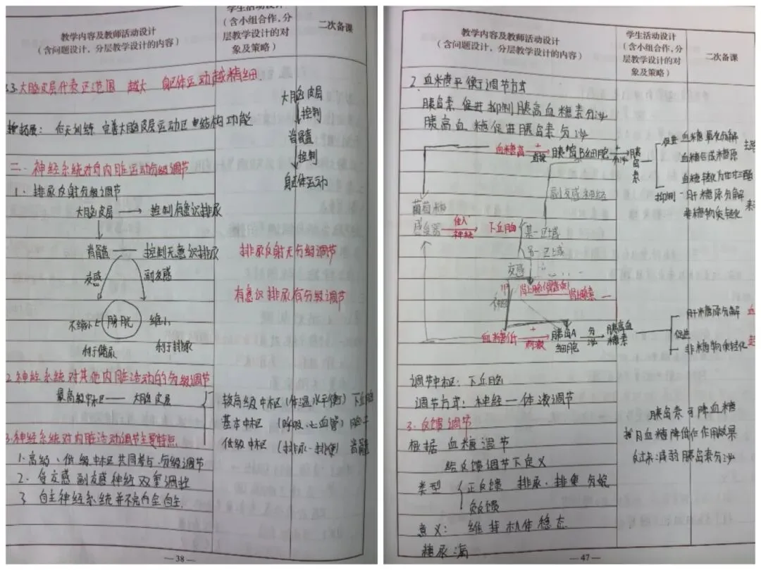 生物教案饱含生命温度,教师手写梳理核心知识点,搭配手绘结构图具象抽象内容,结合生活实际设计探究环节,在笔墨间传递对生命科学的敬畏与探索精神。
