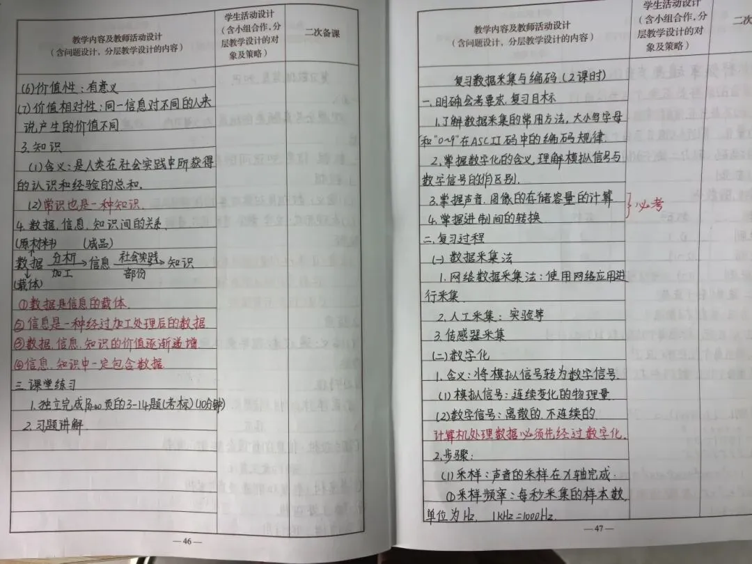 音美、信息技术教案各展特色,尽显多元艺术与技术融合的魅力。音乐教案标注旋律节奏,补充作品解读,字迹与韵律感相得益彰;美术教案手绘范画、标注技法,明确评价标准,引导学生在审美中提升素养;信息技术教案聚焦实操与创新,手写梳理软件操作步骤、编程逻辑,标注技术重难点与创意拓展方向,兼顾技能传授与思维培养,让科技赋能课堂实践。