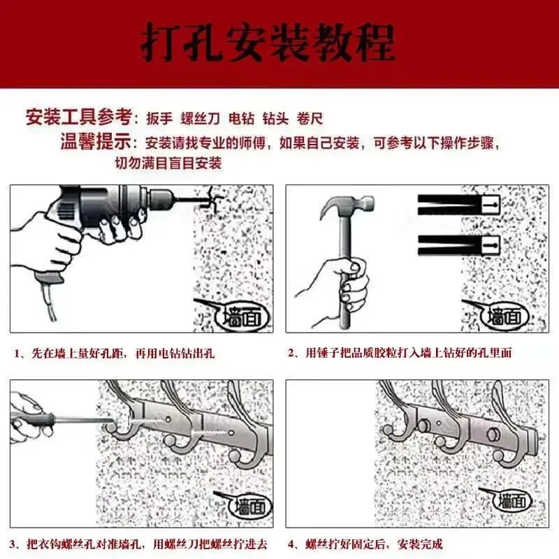 - 选择Φ14mm钻头,用冲击钻垂直墙面打孔,深度52mm~60mm。