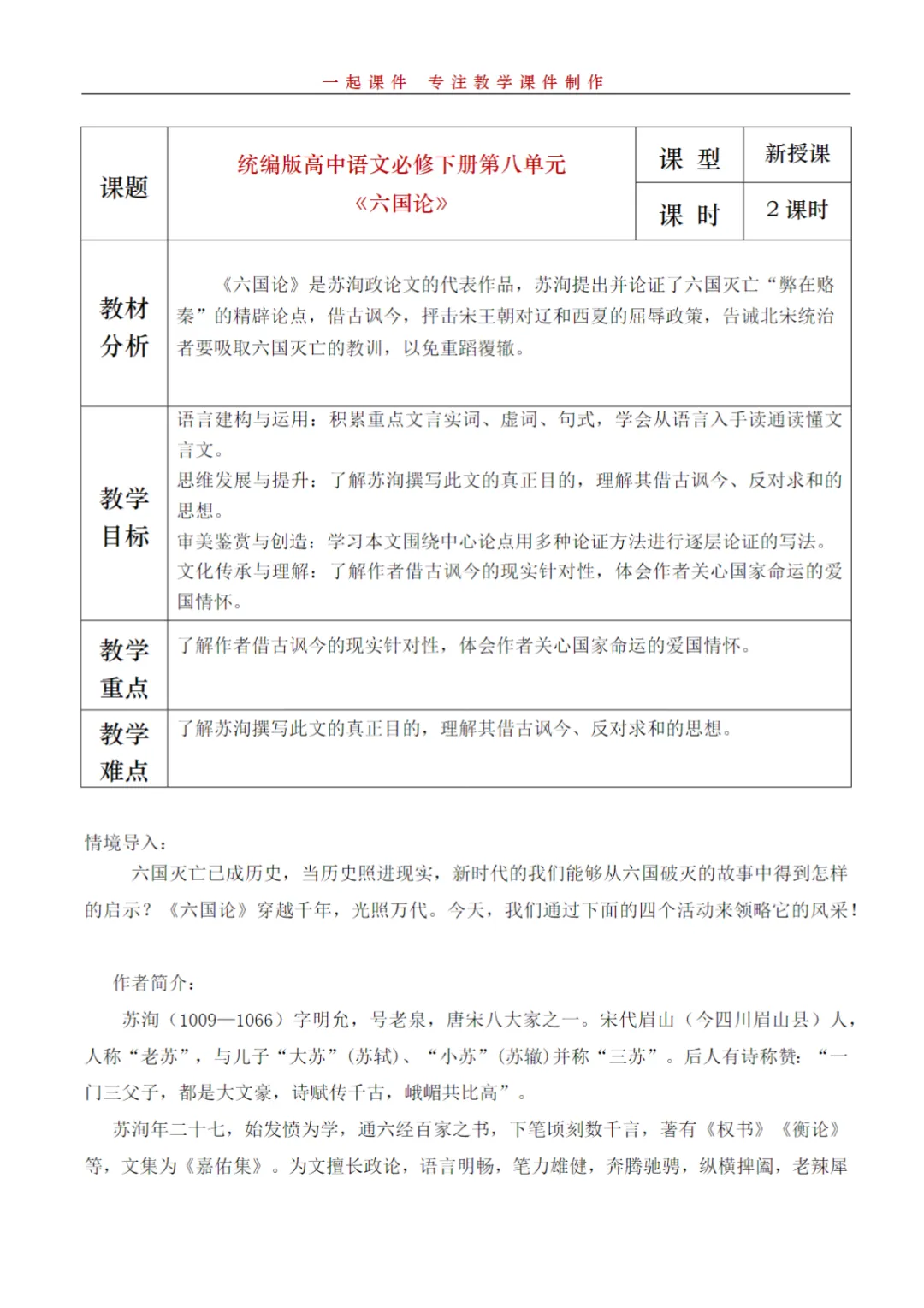 >【一起语文必修下】|《六国论》:课件+教学设计