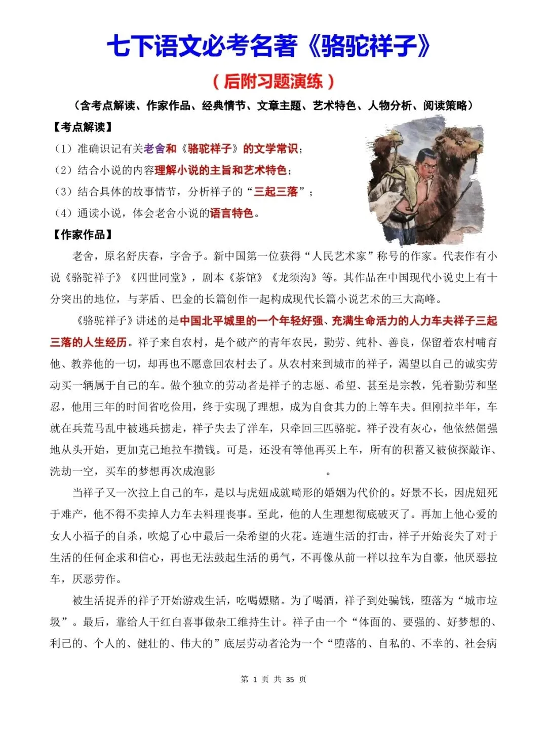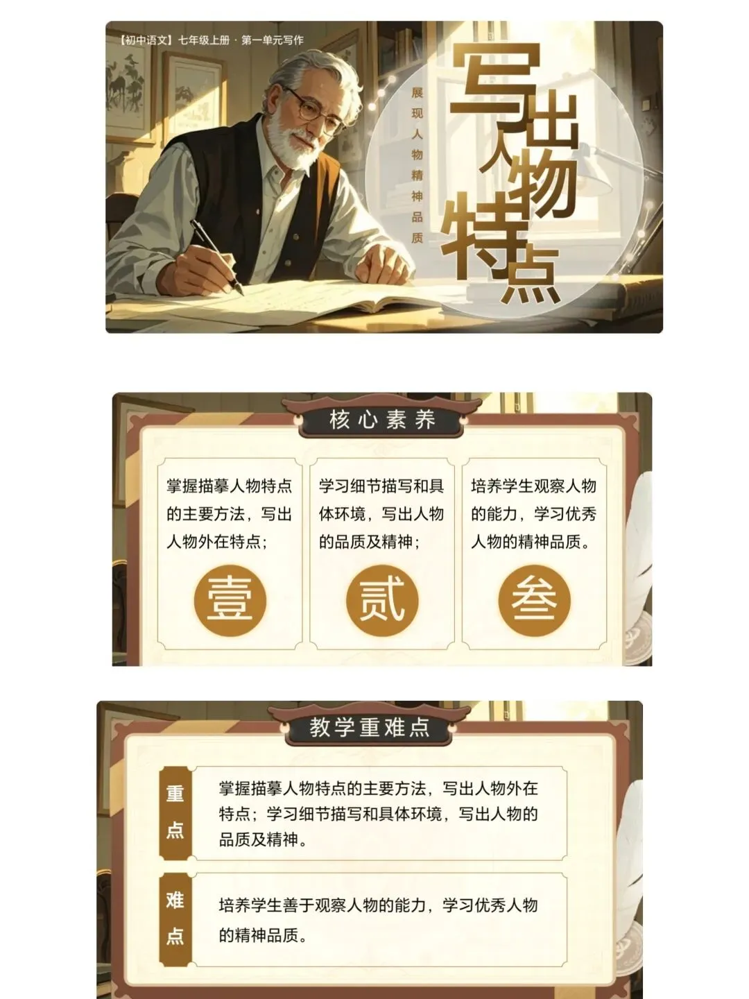 - 专项指导:单元写作全流程指导、综合性学习方案、《骆驼祥子》《海底两万里》名著导读(课件+任务单+逐字稿)。