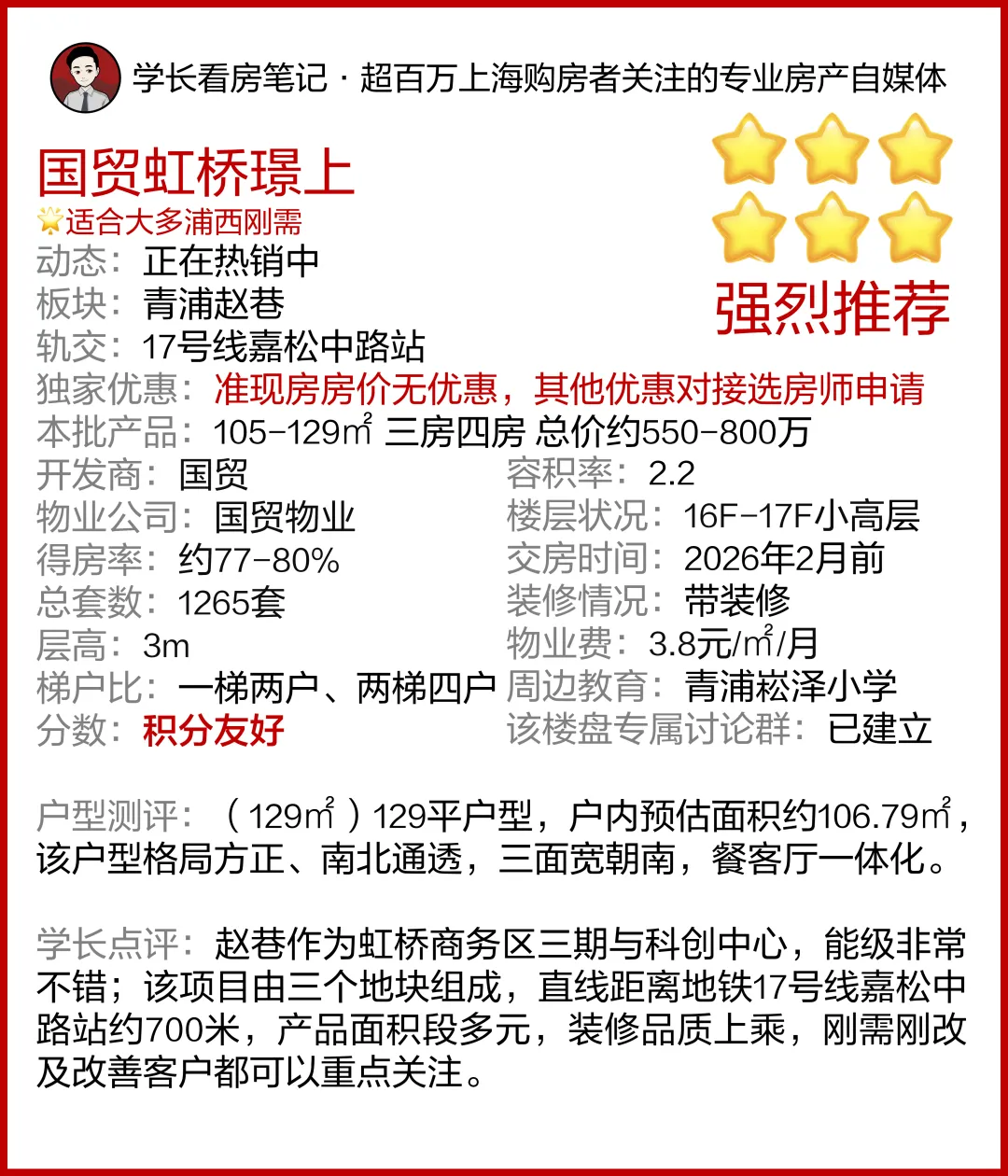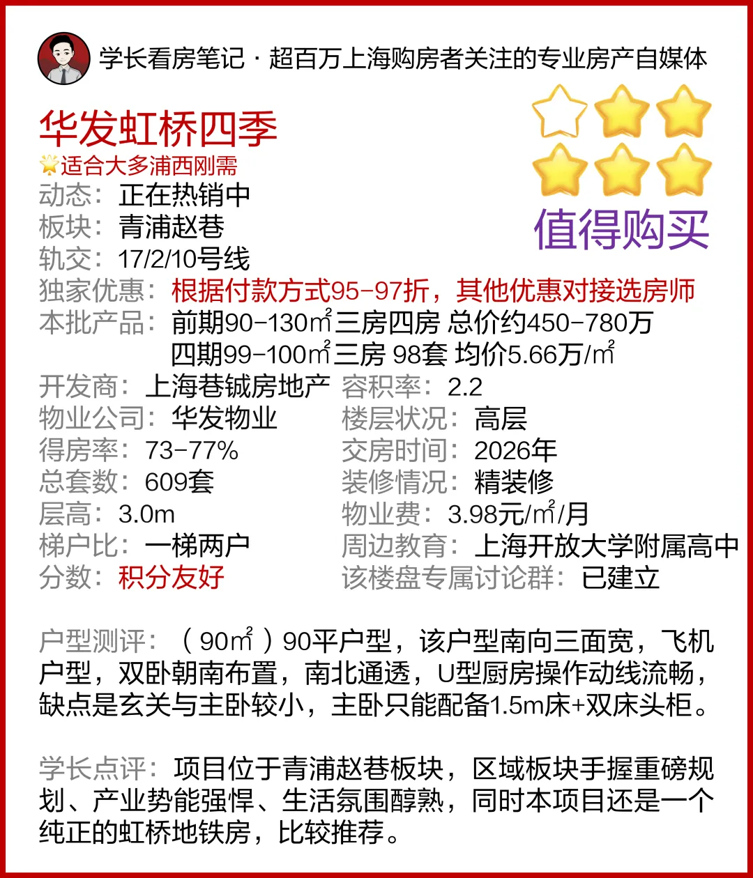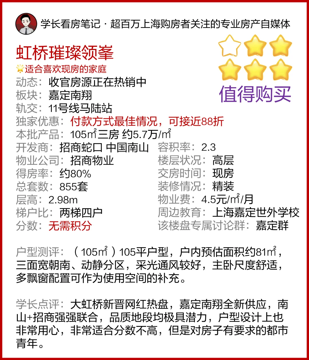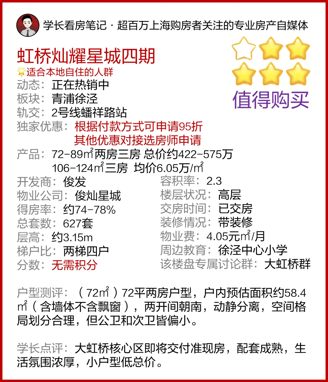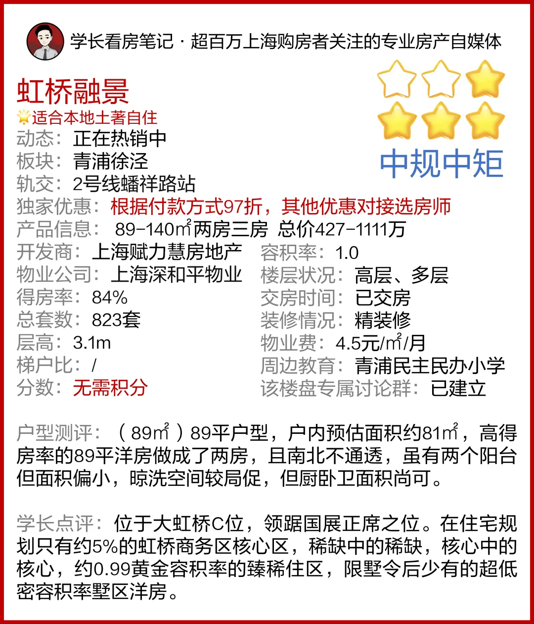 最新消息:450万级“必看盘”,大虹桥的版本答案!「华发虹桥四季」正在热销中!推出建面约98-100㎡三房!最新消息:500万级低总价上车大虹桥!「国贸虹桥璟上」正在热销中!在售建面约105-129㎡三房四房!最新消息,超低能耗住宅!大虹桥徐泾「虹桥灿耀星城」正在热销中!推出建面约72-89㎡两房三房,总价约422-575万!最新消息,青浦徐泾「新虹桥君悦湾墅」等待入市,推出建面约252-264㎡联排别墅,共计30套房源!欲了解详情可点击: