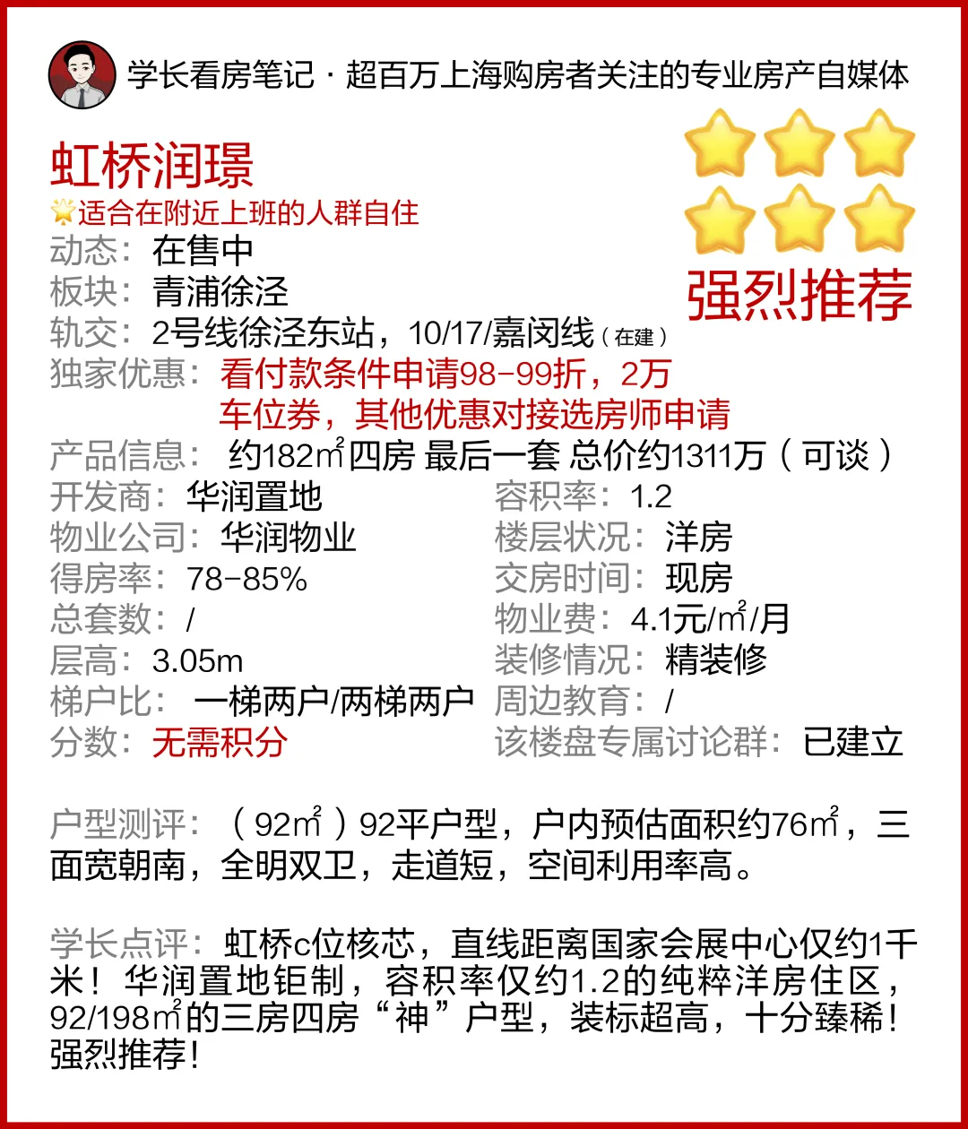 最新消息:大虹桥C位「华润虹桥润璟」在售中!剩余建面约182㎡房源,总价约1311万!大虹桥C位「华润虹桥润璟」在售中!剩余建面约182㎡房源,总价约1311万!