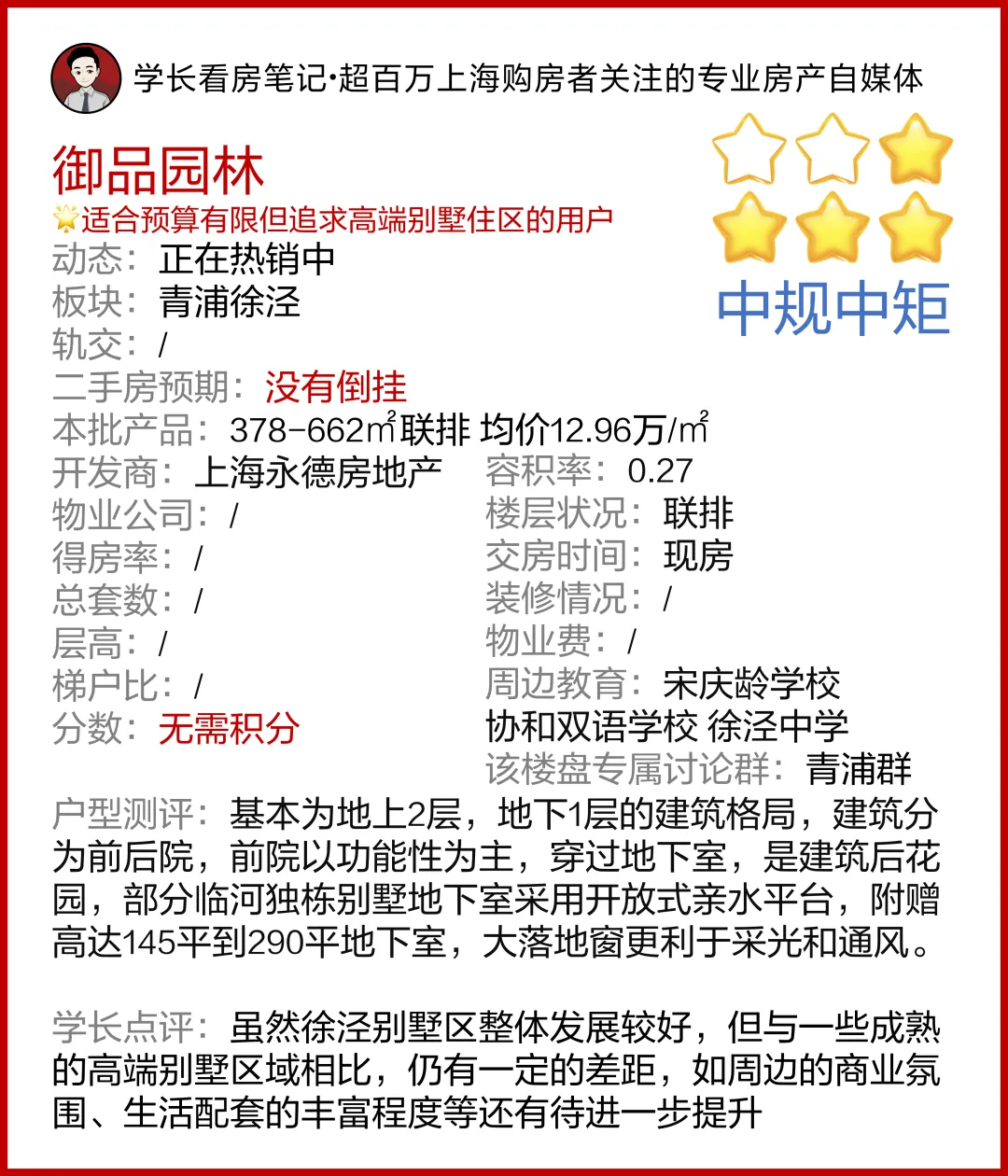 最新消息:大虹桥「御品园林」在售中!建面约378-662㎡联排,均价12.96万/㎡!欲了解详情可点击: