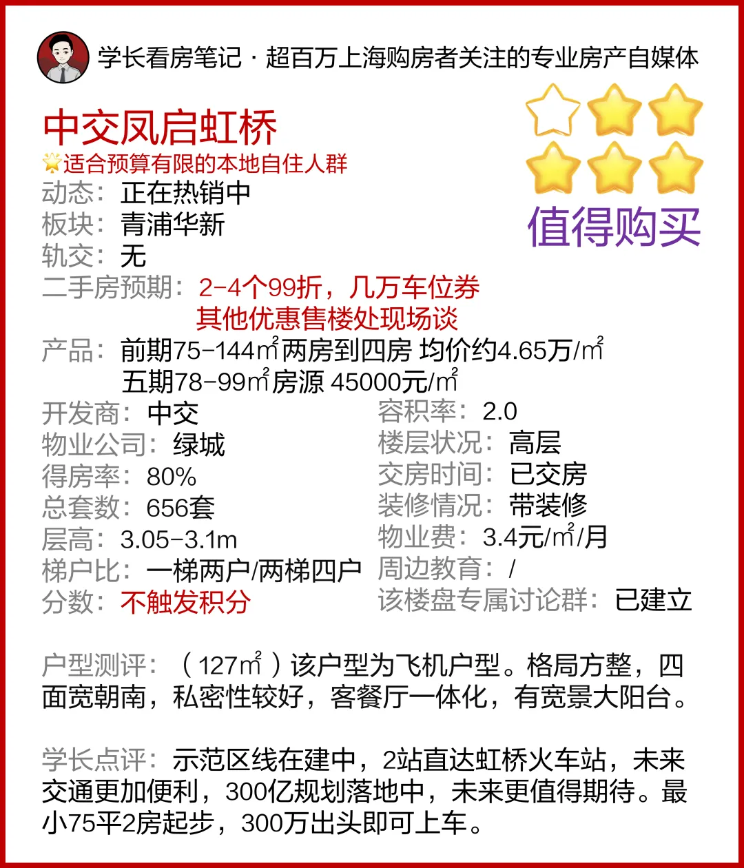 大虹桥「中交凤启虹桥」五期在售中!推出建面约78-99㎡房源,均价约45000元/㎡!