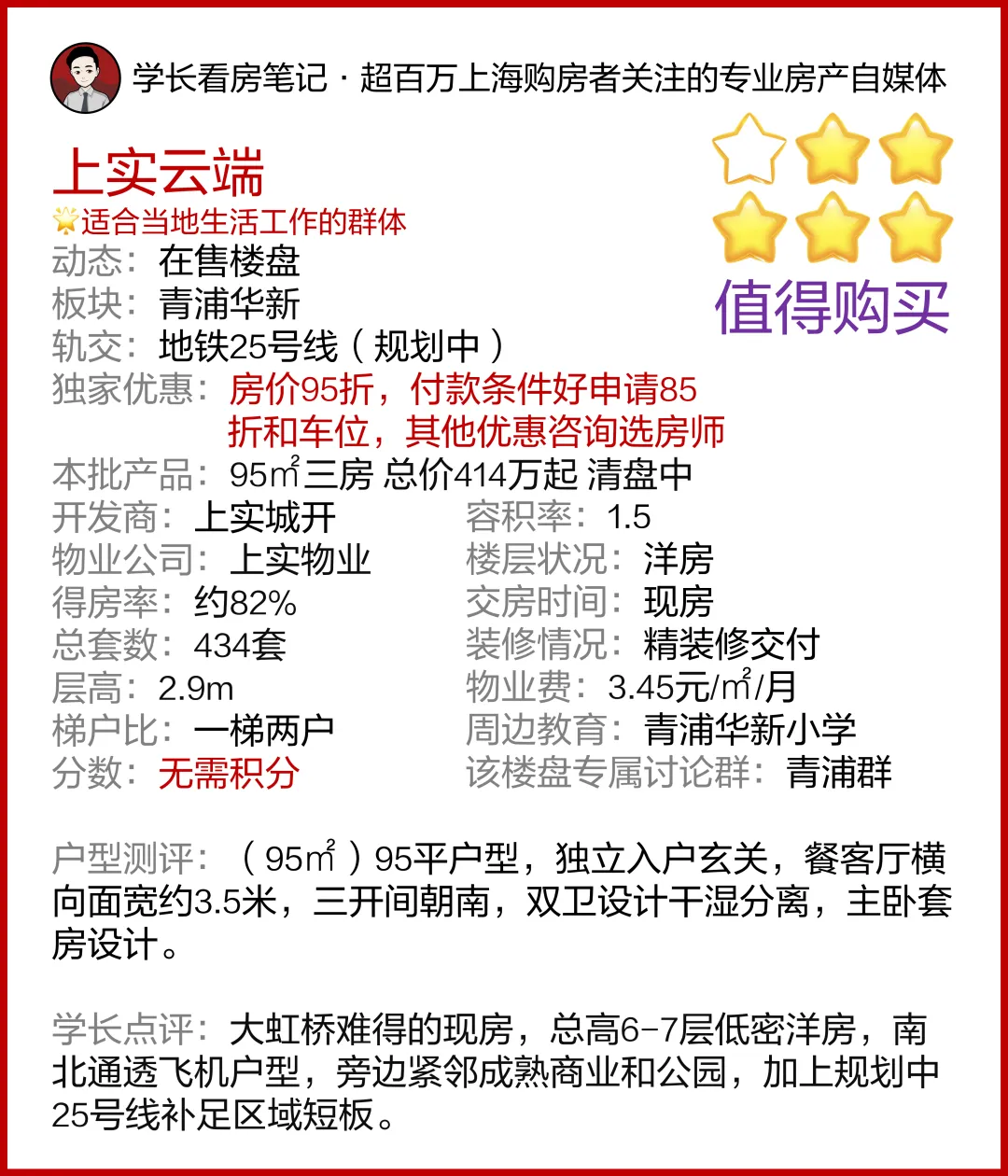 最新消息,毗邻虹桥主城区,国企钜制低密洋房社区,上实云端约95㎡房源正在热销中,总价414万起可上车!欲了解详情可点击: