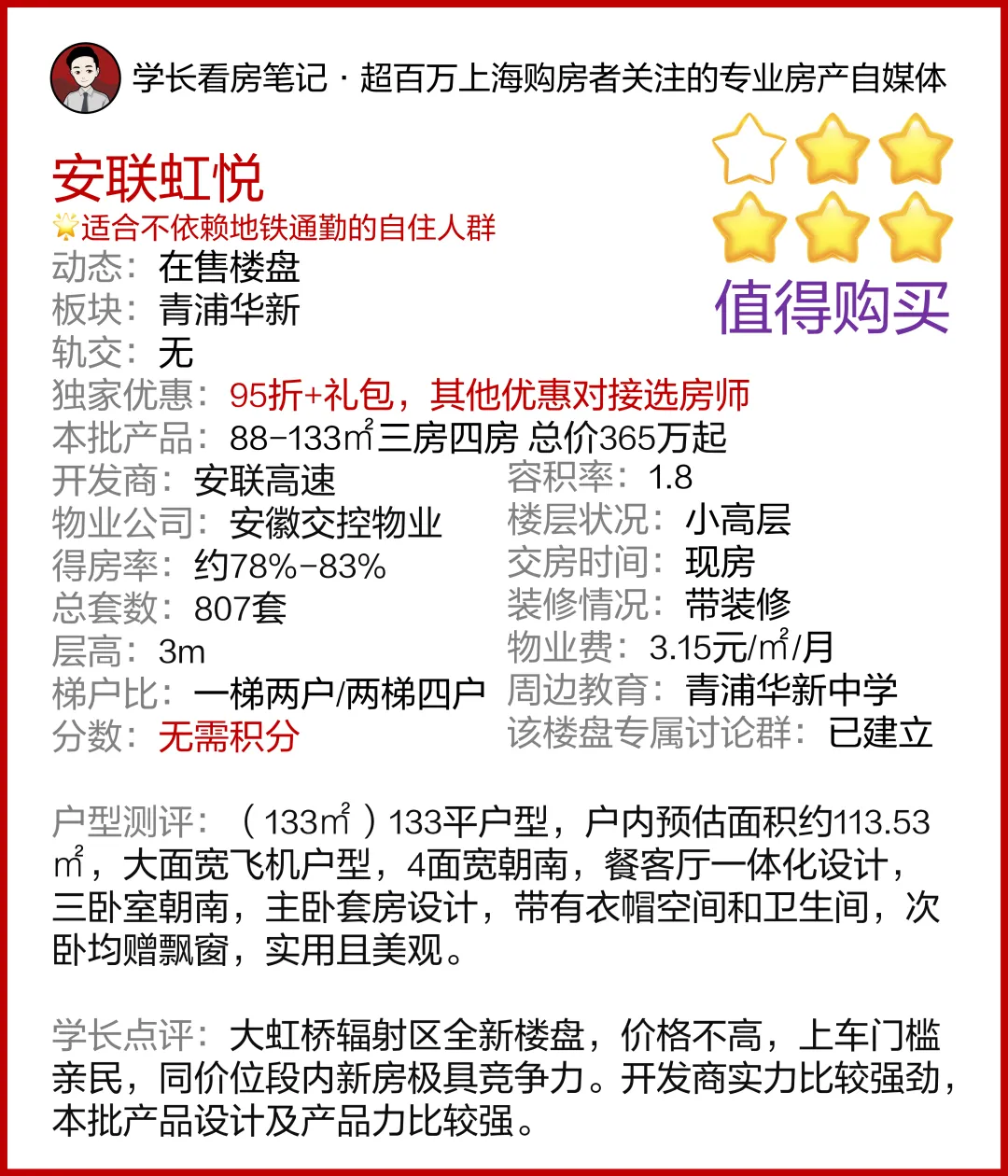 最新消息,青浦华新「安联虹悦」正在热销中,推出建面约88-133㎡三房四房!欲了解详情可点击: