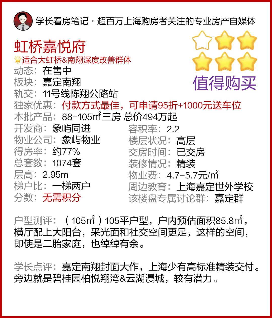 最新消息:嘉定南翔「象屿同进虹桥嘉悦府」正在热销中!推出建面约99-105㎡三房!欲了解详情可点击: