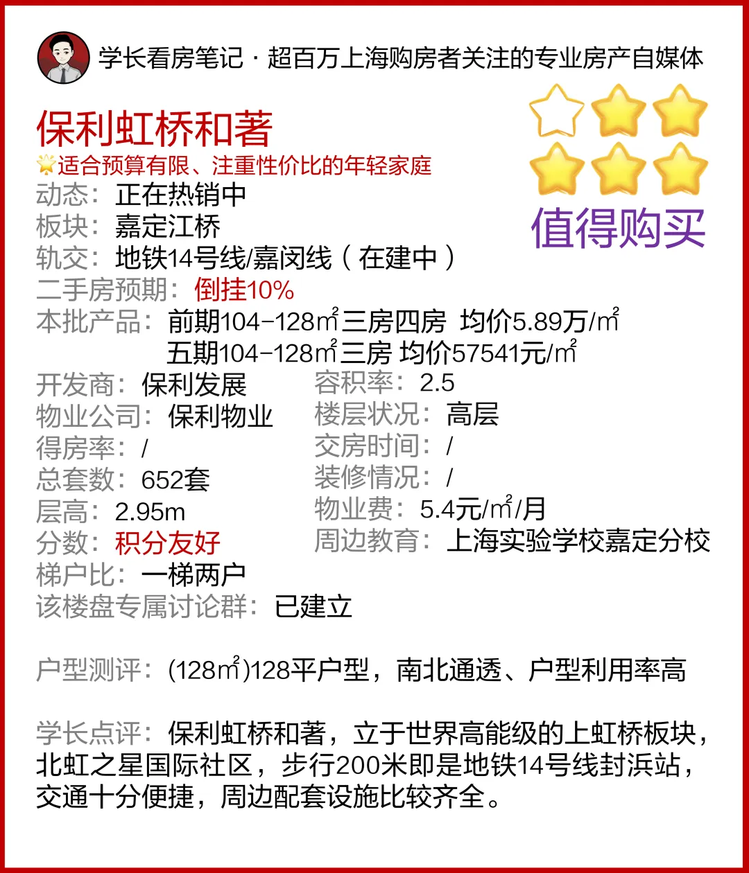 最新消息,嘉定14号线地铁盘「保利虹桥和著」五期正在热销中!推出建面约104-128㎡三房四房,均价约57541元/㎡!欲了解详情可点击:
