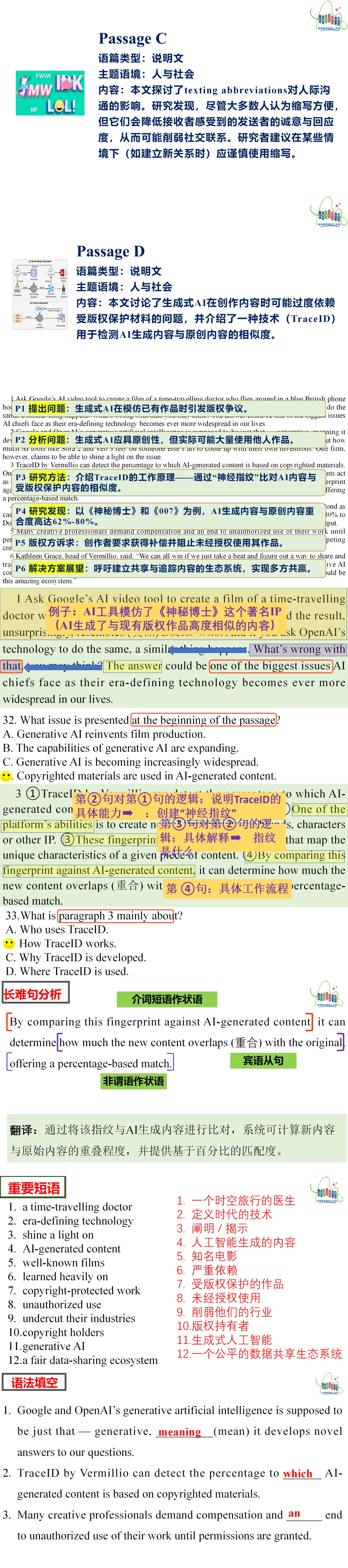 以下仅展示部分内容(完整版内容非常丰富)(所有阅读语篇都是和D篇一样的解析模式,包括核心词汇,长难句分析