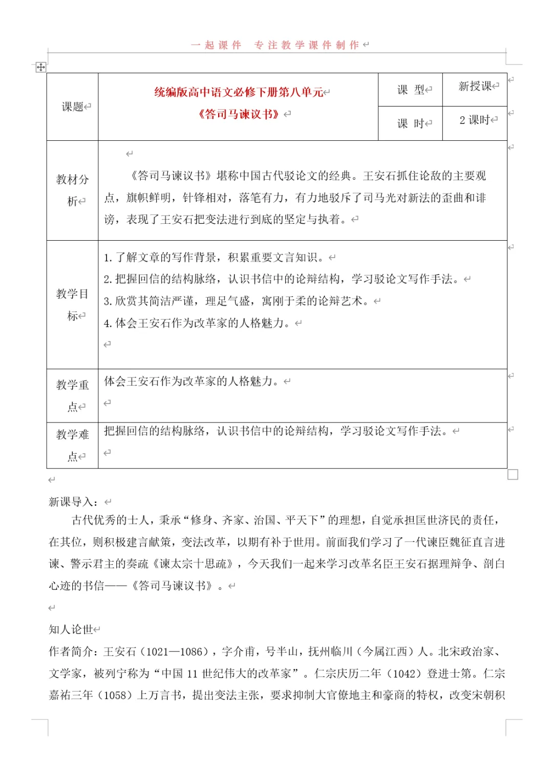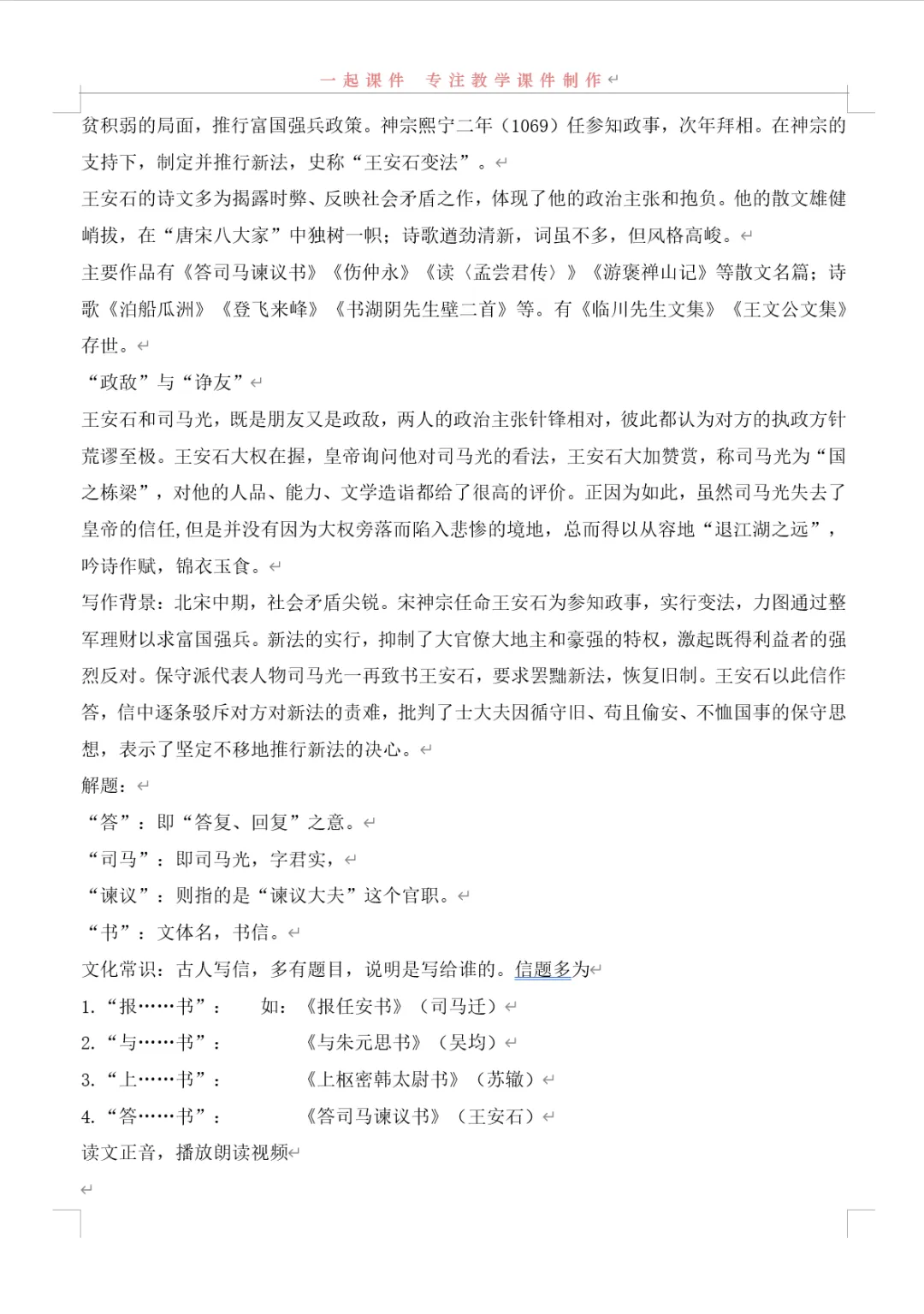 >【一起语文必修下】|《答司马谏议书》:课件+教学设计