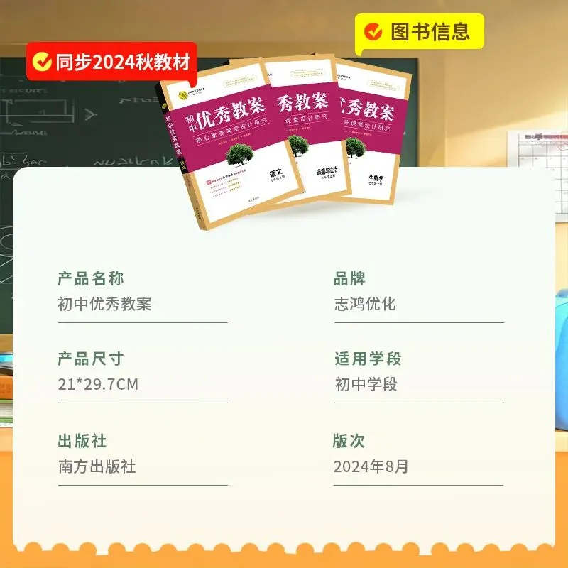 首先,我们来看看它的“硬核配置”: 这本教案由南方出版社出版,2024年8月全新升级,专为初中语文、数学、英语等科目量身打造。它的尺寸为21×29.7cm,标准A4大小,方便老师随身携带或在办公室桌面上使用。更重要的是,它完全同步2024秋季新教材,确保内容与教学大纲无缝衔接。