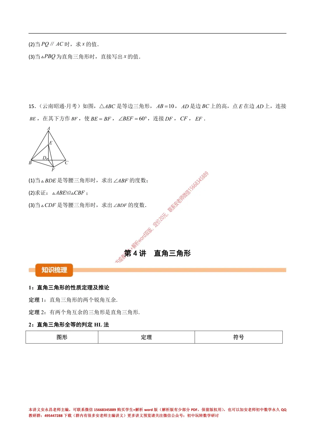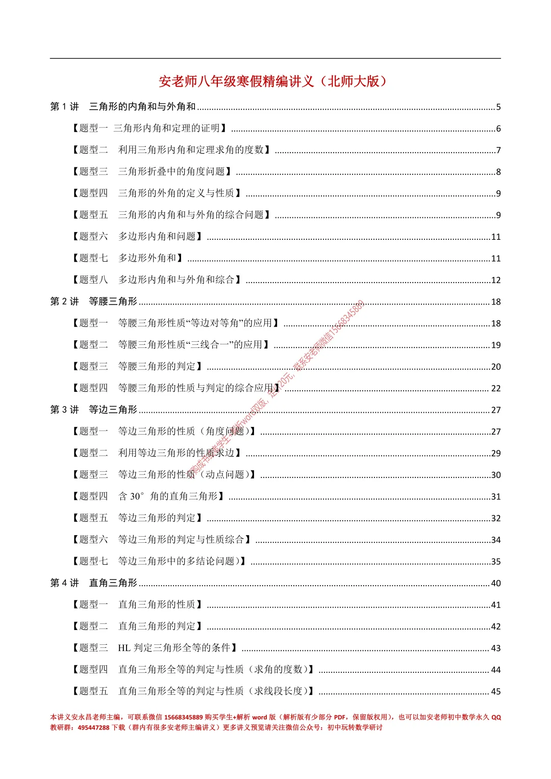 当前位置:首页>讲义>安老师八年级寒假精编讲义(北师大版)