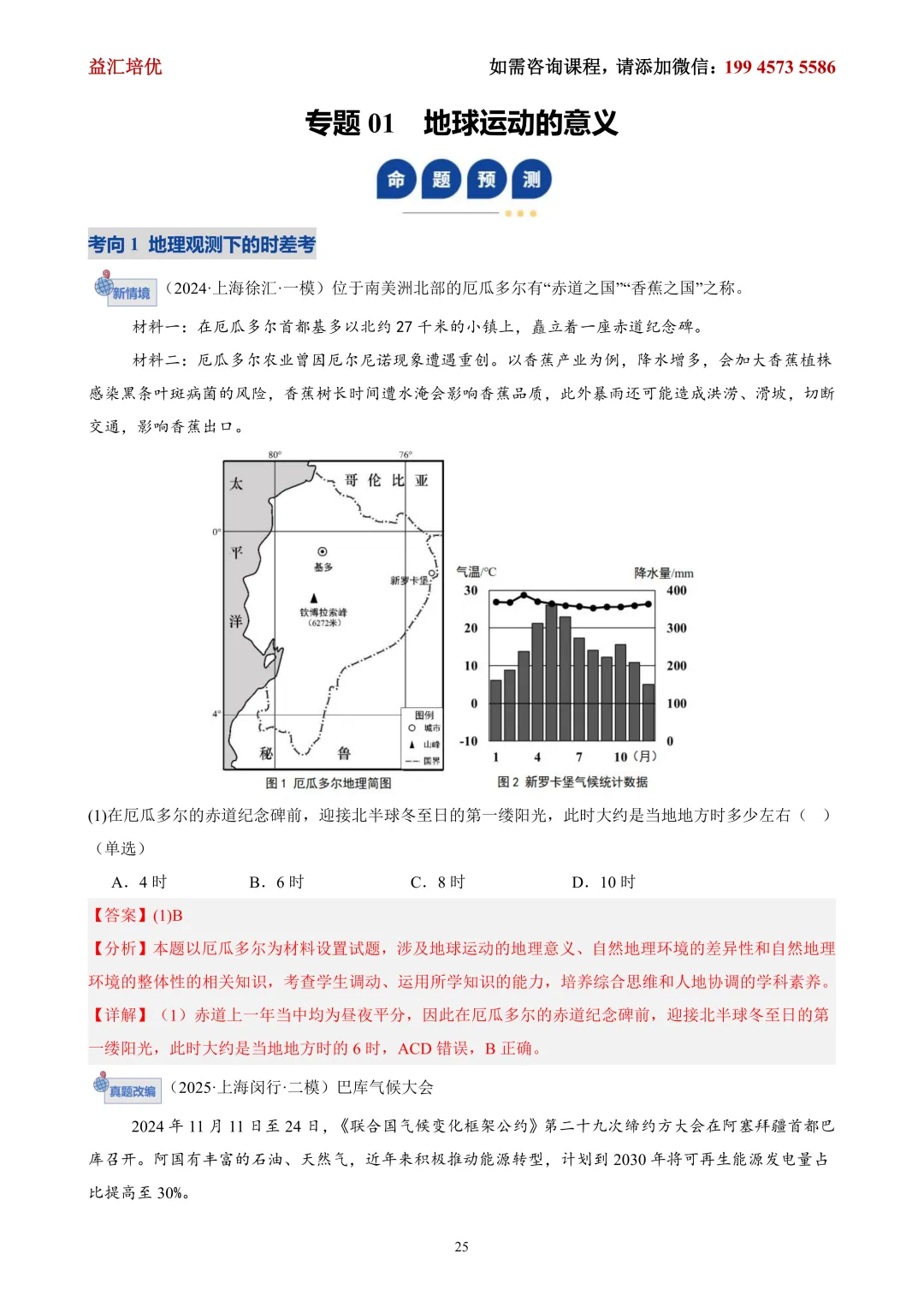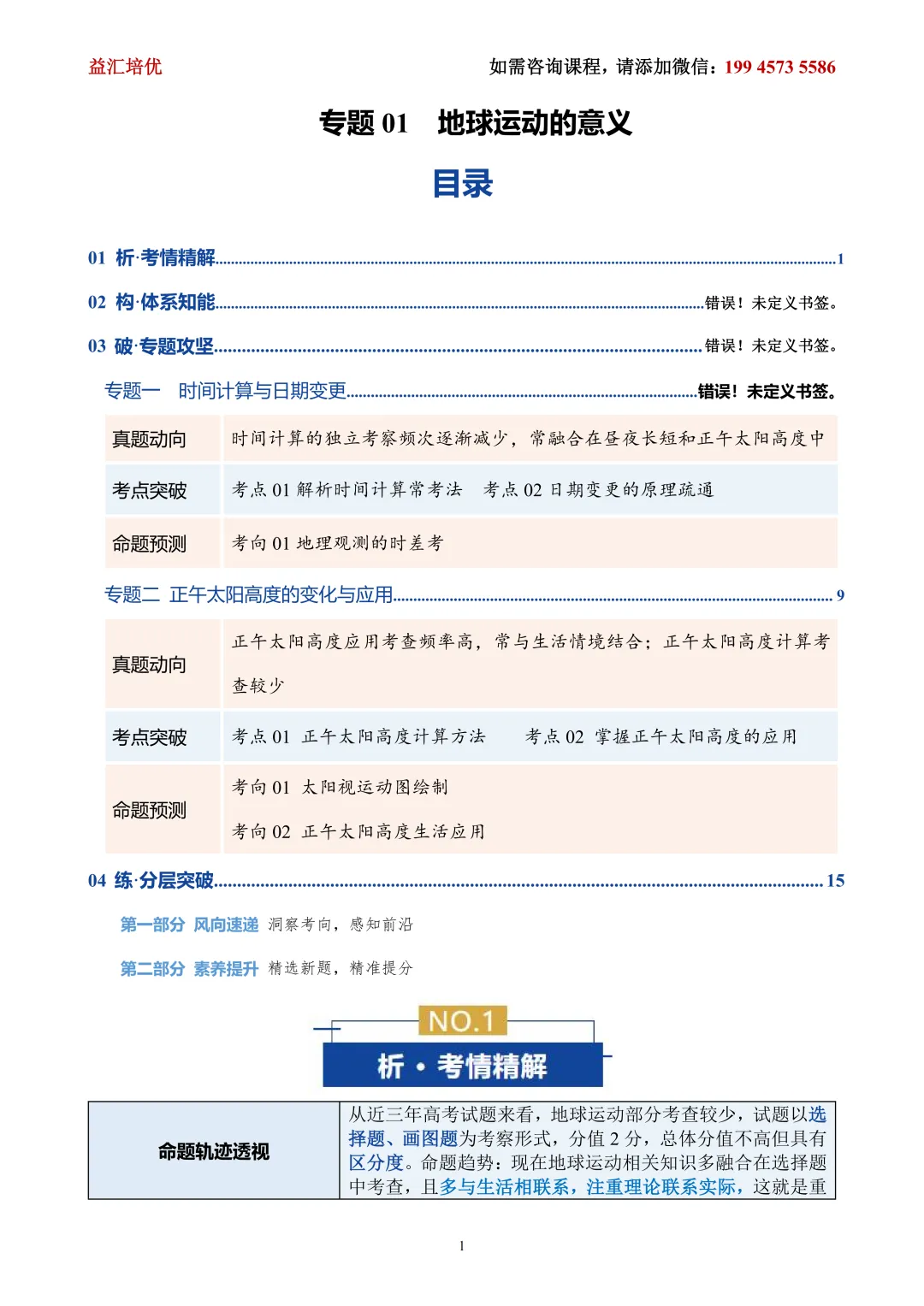 今天给大家带来的是高三地理专题01 地球运动的意义(复习讲义)(含答案)。