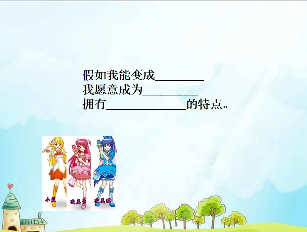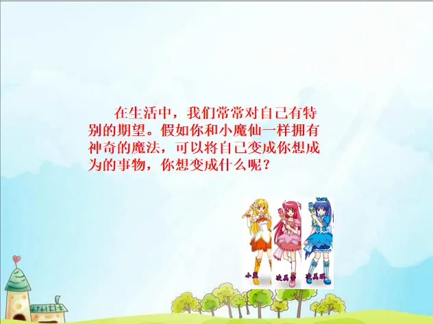 师:生活中,我们常常对自己有特别的期望。假如你拥有神奇的魔法,可以将自己变成你想成为的事物,你想变成什么呢?