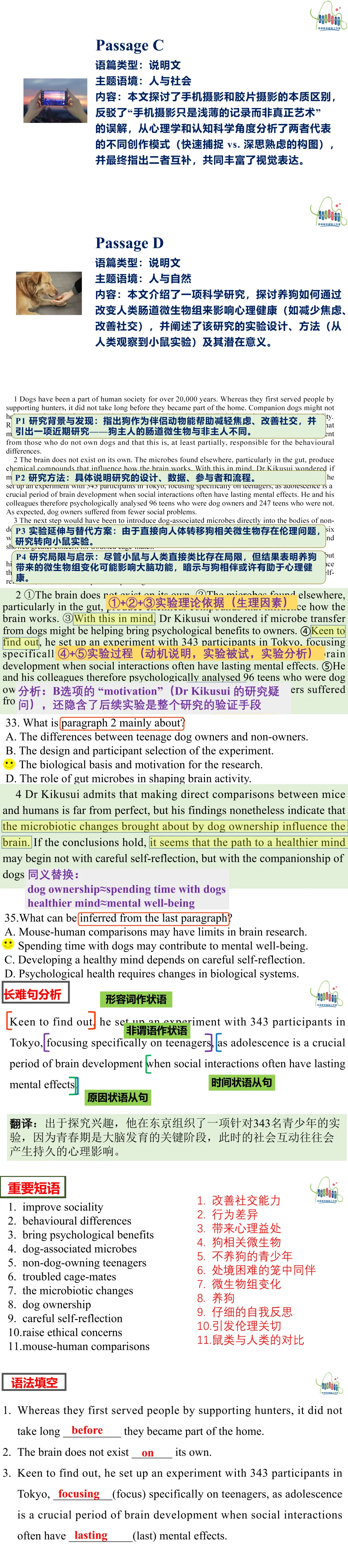 以下仅展示部分内容(完整版内容非常丰富)(所有阅读语篇都是和C篇一样的解析模式,包括核心词汇,长难句分析