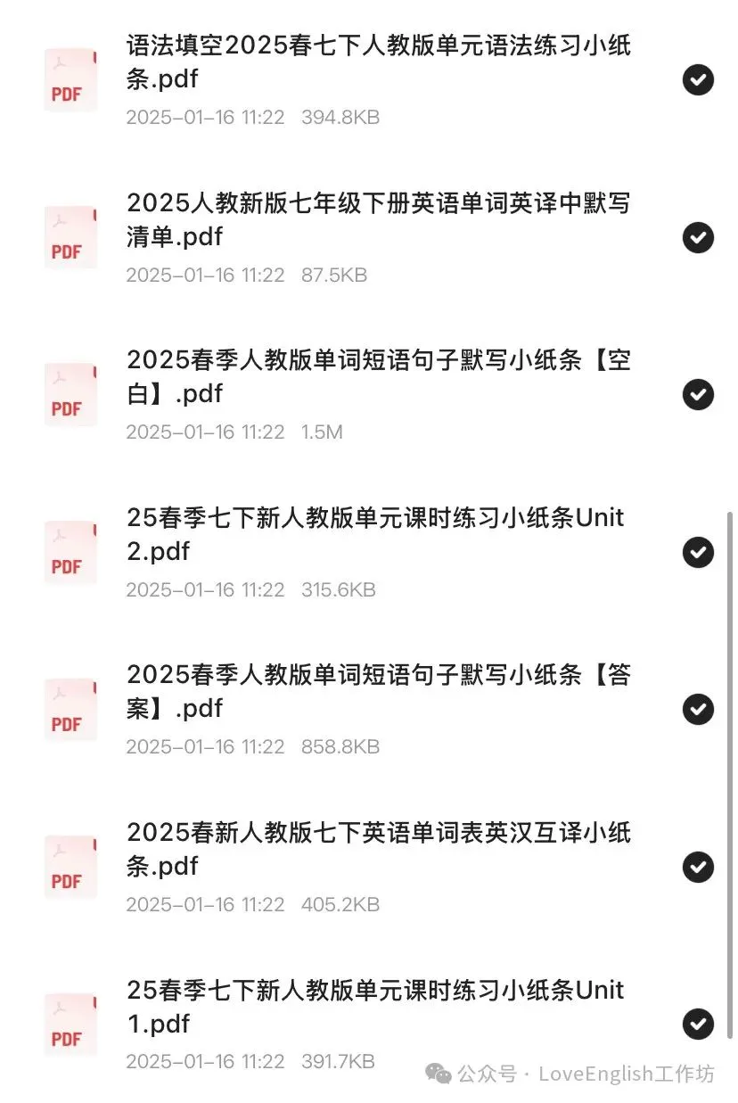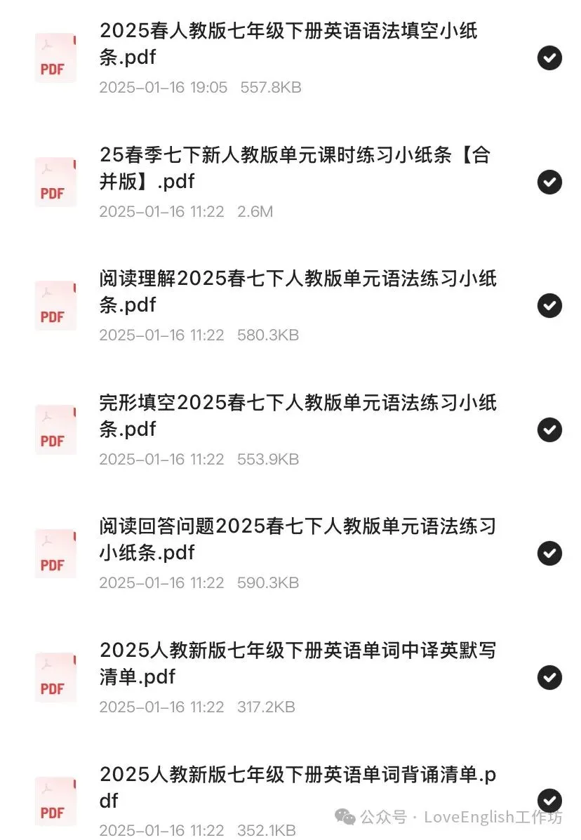 2️⃣新人教版英语七年级下册同步知识练习小纸条合集