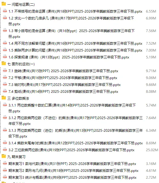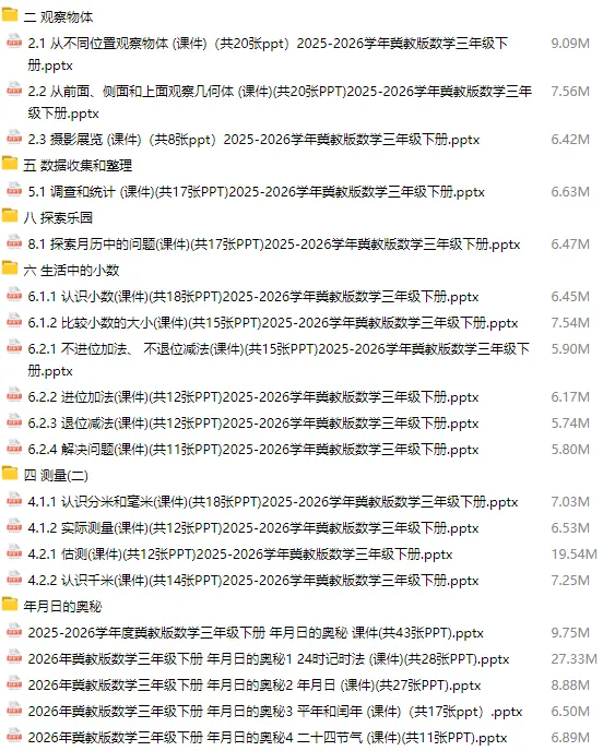 当前位置:首页>课件>2026冀教版数学3年级下册新教材课件PPT教案,可备课编辑