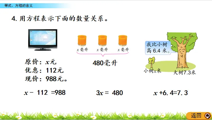 能正确找出应用题中数量间的相等关系。
