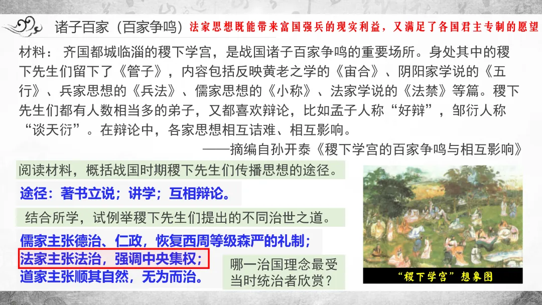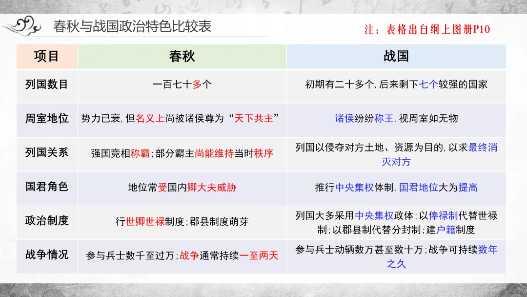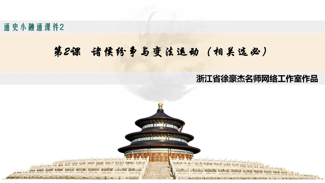 编者按:浙江省徐豪杰名师网络工作室集全室之力编写的选考复习教辅用书——《睛点书理•通史小融通》已经通过浙江省中小学教辅材料评议委员会专家组评议,入选浙江省教育厅教辅评议目录,由新华书店发行(新华目录:上册6694;下册6695)。本套教辅原有配套课件由南太湖团队精心制作(甲件),现本工作室正制作全新一套配套课件(乙件),将会陆续上传分享在工作室网站上(路径:工作室网站——教学资源——工作室开发的通史小融通)。本期推出由湖州市行知中学沈燕老师制作的乙件第2个课件《第2节 诸侯纷争与变法运动(相关选必)》。