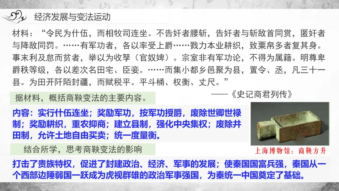 选考课件 | 通史小融通 第2节 诸侯纷争与变法运动(相关选必)