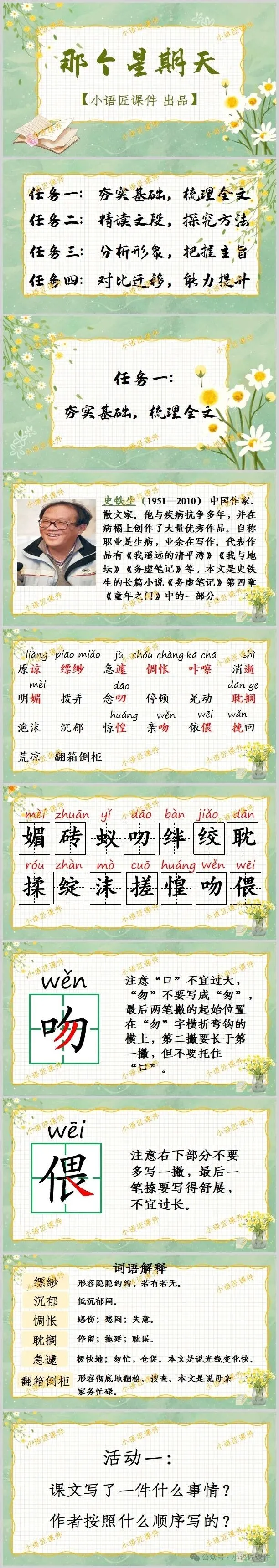 大家好,我是小语匠课件!今天给大家分享六年级下册《那个星期天》的独家课件。