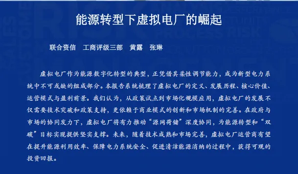 最近不少朋友问我虚拟电厂,说这是能源转型的大风口,但又搞不懂它到底是啥、能不能投。今天就把联合资信这份《能源转型下虚拟电厂的崛起》报告,用大白话给大家拆明白。