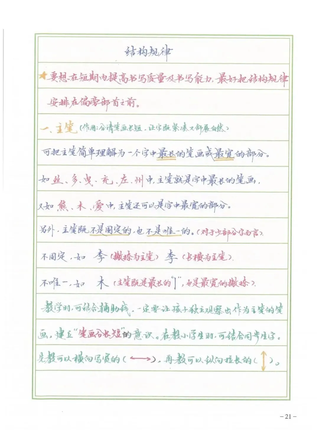 >基本笔画偏旁部首结构规律快写训练教案手写稿