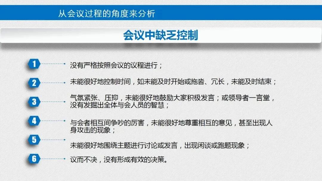 会议主持人要有良好的引导和控场能力,严格控制好会议时间;
